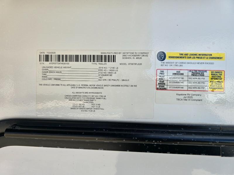 New 2026 Keystone RV Sprinter 3670FLS Fifth Wheel