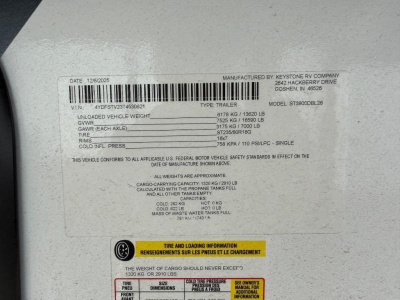 New 2026 Keystone RV Sprinter 3900DBL Fifth Wheel