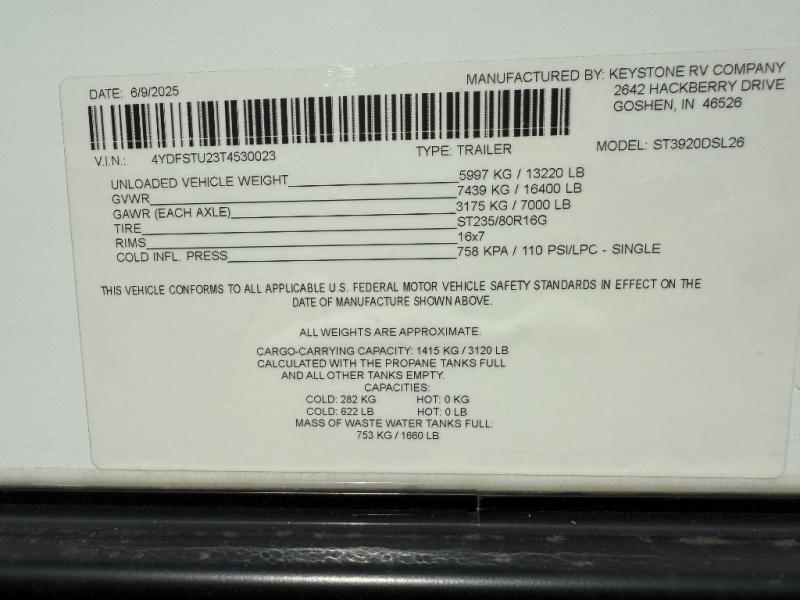 New 2026 Keystone RV Sprinter 3920DSL Fifth Wheel