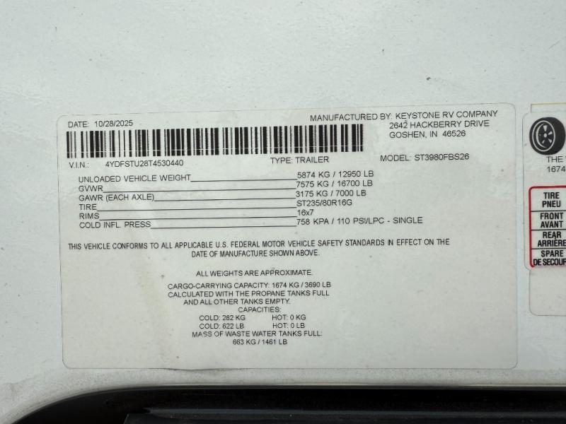 New 2026 Keystone RV Sprinter 3980FBS Fifth Wheel
