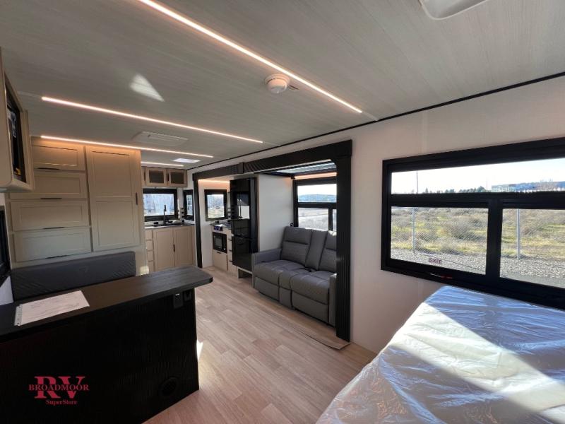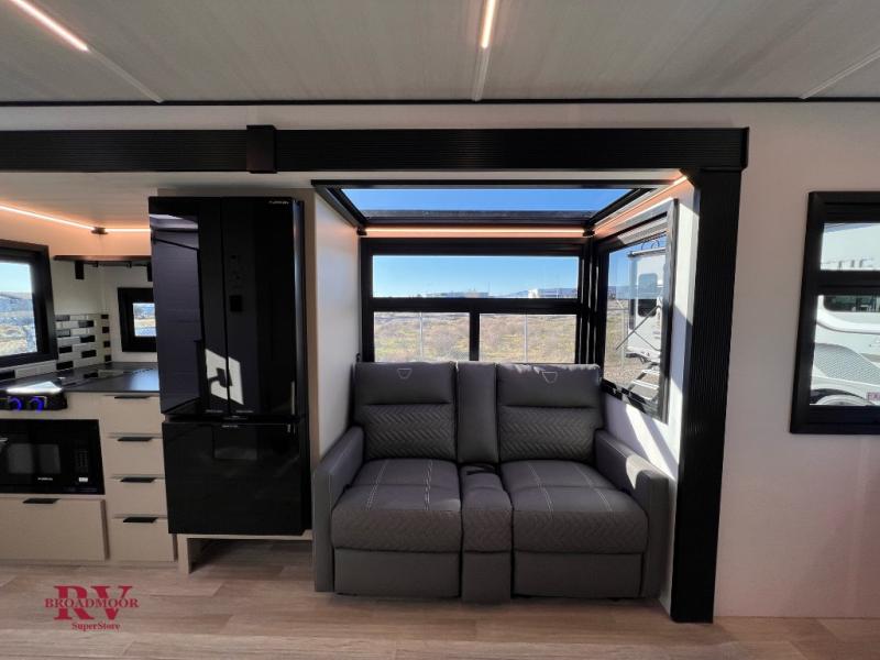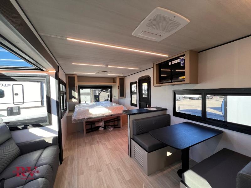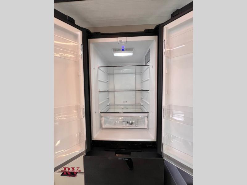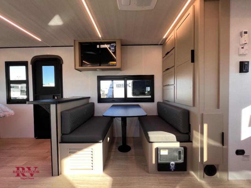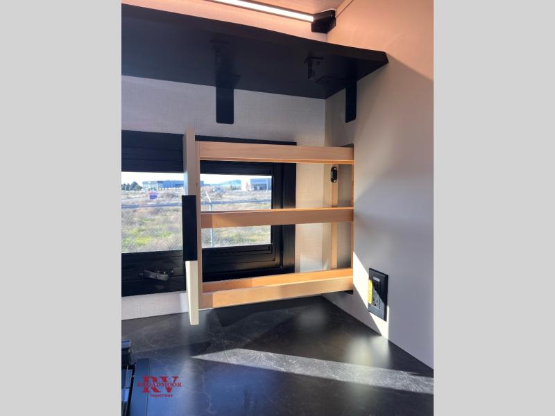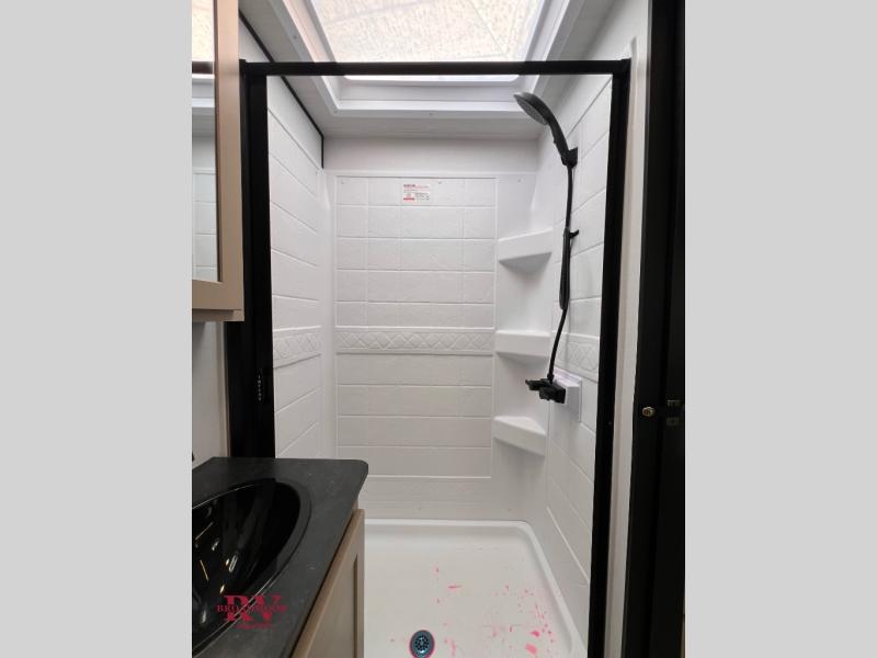 You and your spouse will love this travel trailer’s plush dream day bed with a comfortable bamboo mattress. Ample storage is provided by the wardrobes on each side of the bed, keeping your favorite outfits within easy reach. The booth dinette and theater seating provide perfect spots to enjoy meals, play games, or relax with loved ones. Plus, the layout is designed to maximize comfort and conversation. Whip up meals and snacks with ease and enjoy the convenience of having everything you need in one place since the kitchen is equipped with essentials, including a refrigerator, microwave, and pull-out pantry. Also, the full bathroom provides a convenient private space to get ready for the day.
