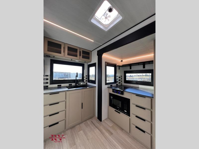 Each Keystone Walkabout travel trailer features a rugged automotive-grade aluminum exterior, designed to withstand the rigors of travel. The 11-gauge aluminum powder corner rails add strength and durability while keeping the trailer lightweight. It is known that storage is key to a comfortable trip. That's why these trailers are designed with maximum storage in mind, providing ample space for all your gear and equipment. You'll also feel like you're gliding down the road, not bouncing along, thanks to the Kurt Touring suspension that ensures a smooth ride, even on rough terrain. Further, the composite solid steps are durable and easy to clean, while the composite Thinscape countertop offers a stylish, low-maintenance surface for food prep and relaxation. Finally, with the 110-volt outlets throughout the trailer, you'll have plenty of power to keep your devices charged and your appliances running.