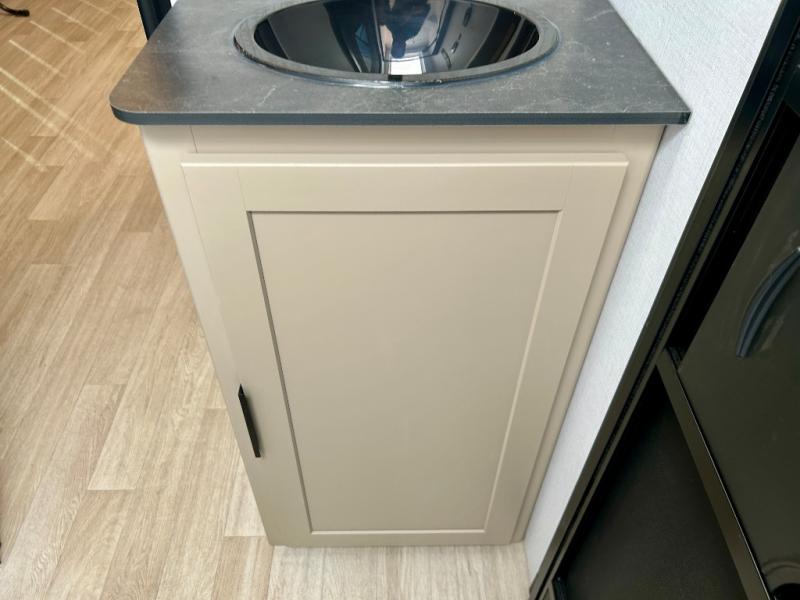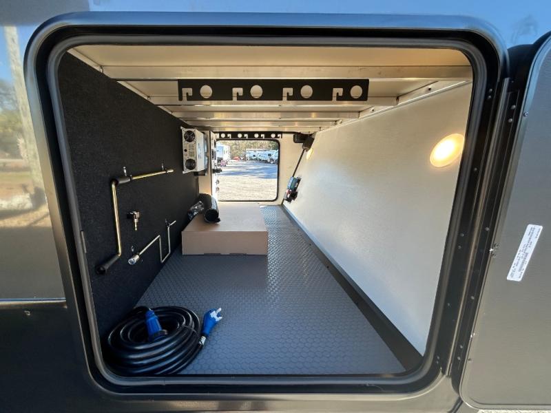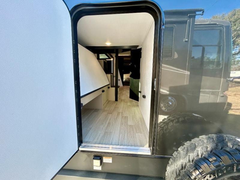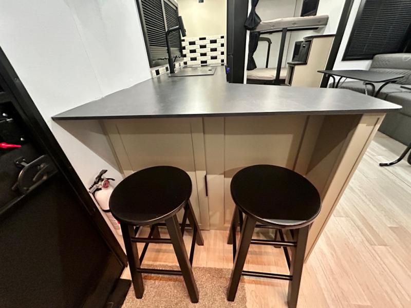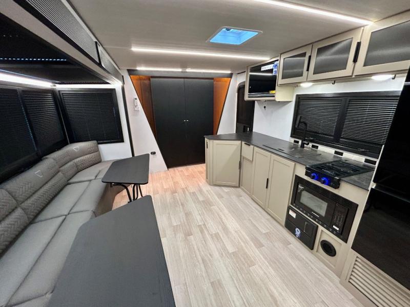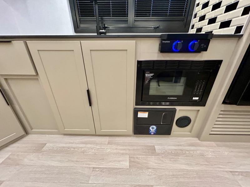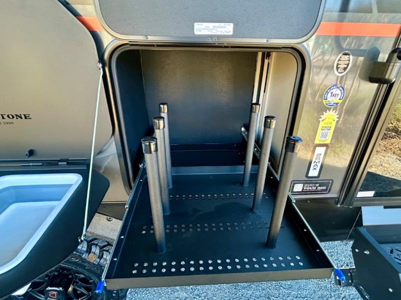 Each Keystone Walkabout travel trailer features a rugged automotive-grade aluminum exterior, designed to withstand the rigors of travel. The 11-gauge aluminum powder corner rails add strength and durability while keeping the trailer lightweight. It is known that storage is key to a comfortable trip. That's why these trailers are designed with maximum storage in mind, providing ample space for all your gear and equipment. You'll also feel like you're gliding down the road, not bouncing along, thanks to the Kurt Touring suspension that ensures a smooth ride, even on rough terrain. Further, the composite solid steps are durable and easy to clean, while the composite Thinscape countertop offers a stylish, low-maintenance surface for food prep and relaxation. Finally, with the 110-volt outlets throughout the trailer, you'll have plenty of power to keep your devices charged and your appliances running.
