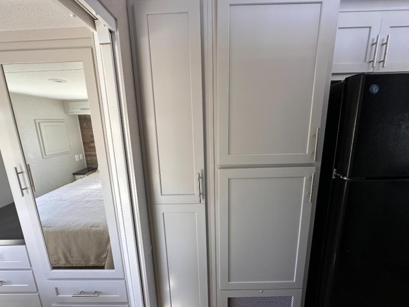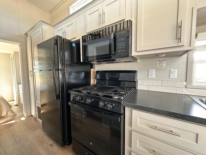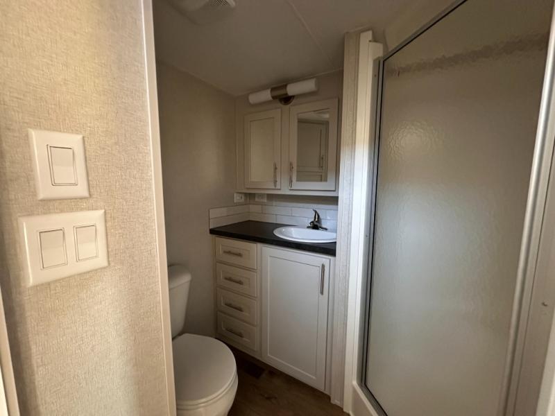 There are countless ways you can enjoy the Kropf Industries Lakeside Series park model! You can enjoy it as a cabin in the woods, or you can stay closer to civilization and use it as a party center. The laminate/self edge countertops and stone/tile backsplash is not only appealing to the eye, but also easy to clean. Stay clean with a 54" one piece fiberglass shower and enjoy your favorite beverages chilled in the residential 18 cubic foot refrigerator. A queen bed offers a good night's rest and mini blinds add extra privacy. There are many upgrade options you can select like an on demand gas water heater, an upright furnace, premium siding, a metal roof for the rain to fall right off, and brick mold window trim for an even more desirable exterior. Come see all of the practical functionality today!