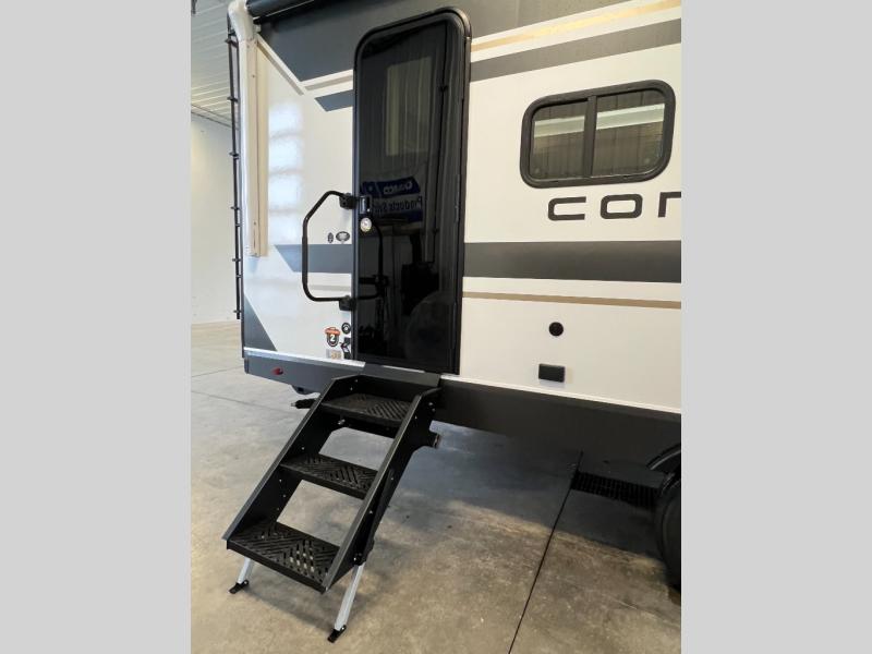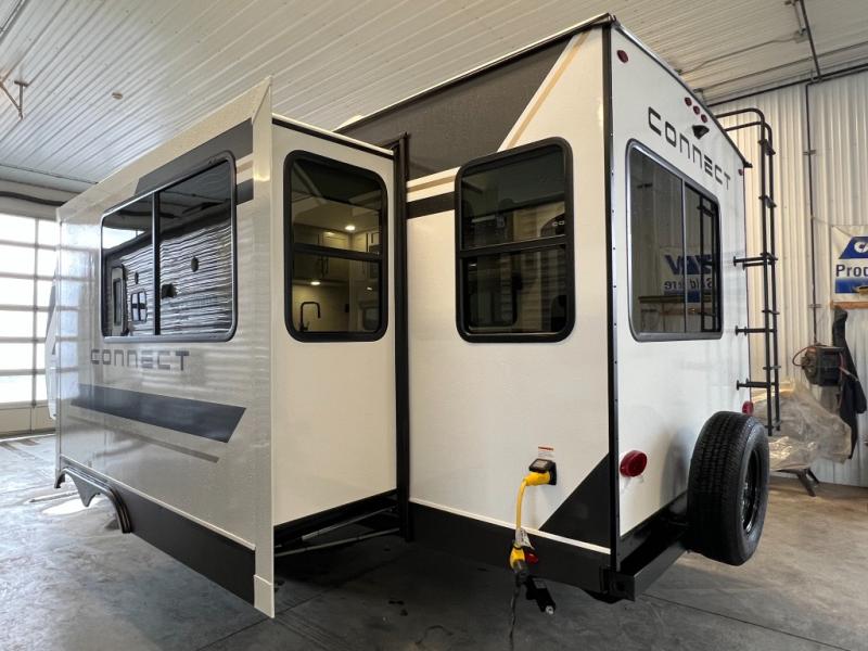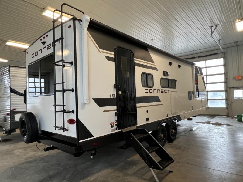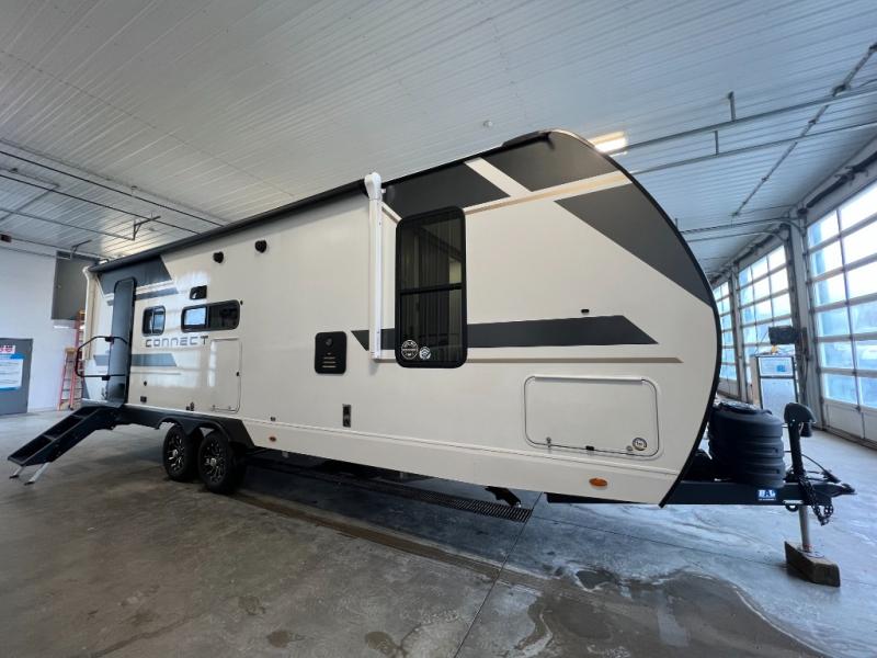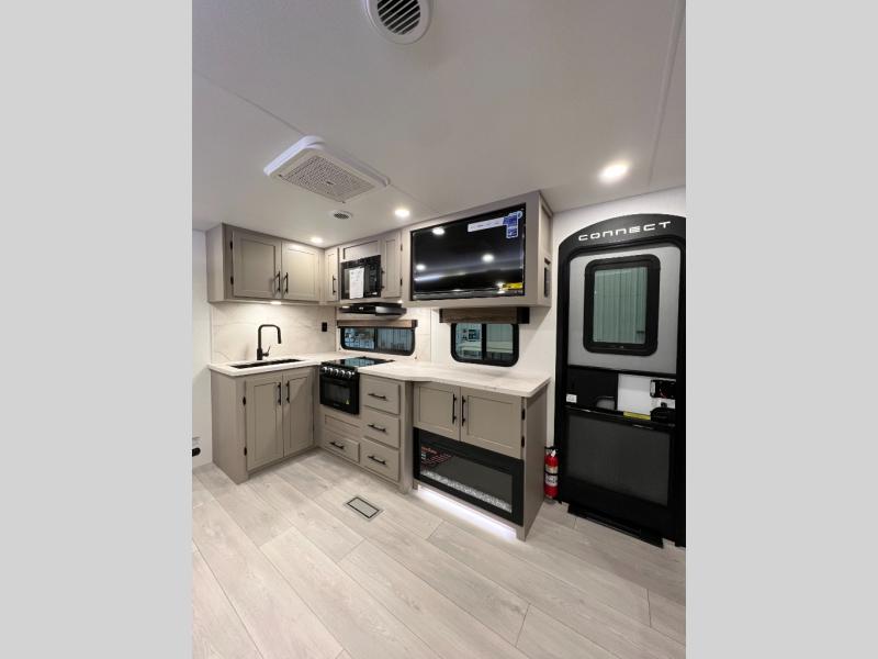 The KZ Connect travel trailer comes with an RV Airflow System which optimizes the airflow for your air conditioner. This improves performance, speeds up cooling times, and reduces noise in your trailer. Some of the other helpful features found on the Connect are the heated, insulated, and enclosed underbelly, the exterior docking station, the fiberglass front cap with front windshield, the 82" interior ceiling height, and the protective front diamond plate. There are some useful technological features, like the two LED motion-sensor lights, the HDMI and USB charger. The KZ Engage is powered by OneControl, and it monitors battery levels and controls slide rooms, the leveling system, the awning, inside/outside lighting, and the TPMS prep.