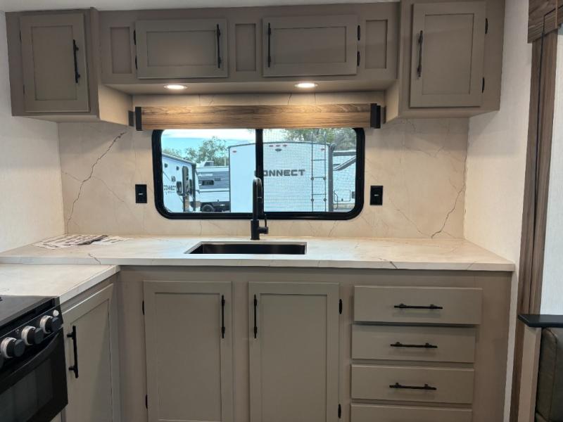 The KZ Connect travel trailer comes with an RV Airflow System which optimizes the airflow for your air conditioner. This improves performance, speeds up cooling times, and reduces noise in your trailer. Some of the other helpful features found on the Connect are the heated, insulated, and enclosed underbelly, the exterior docking station, the fiberglass front cap with front windshield, the 82" interior ceiling height, and the protective front diamond plate. There are some useful technological features, like the two LED motion-sensor lights, the HDMI and USB charger. The KZ Engage is powered by OneControl, and it monitors battery levels and controls slide rooms, the leveling system, the awning, inside/outside lighting, and the TPMS prep.
