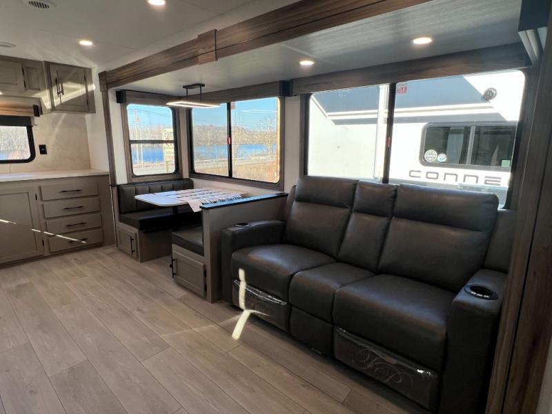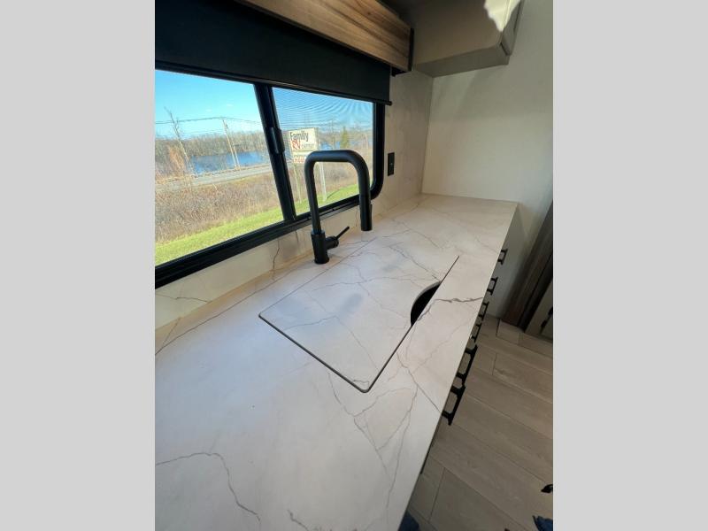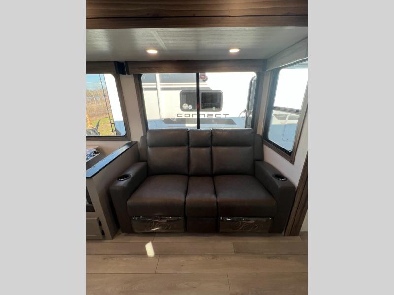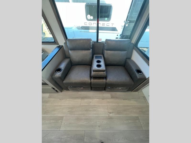The KZ Connect travel trailer comes with an RV Airflow System which optimizes the airflow for your air conditioner. This improves performance, speeds up cooling times, and reduces noise in your trailer. Some of the other helpful features found on the Connect are the heated, insulated, and enclosed underbelly, the exterior docking station, the fiberglass front cap with front windshield, the 82" interior ceiling height, and the protective front diamond plate. There are some useful technological features, like the two LED motion-sensor lights, the HDMI and USB charger. The KZ Engage is powered by OneControl, and it monitors battery levels and controls slide rooms, the leveling system, the awning, inside/outside lighting, and the TPMS prep.