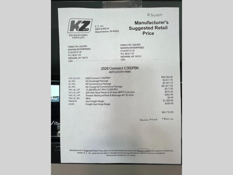 KZ Connect travel trailer C302FBK highlights: