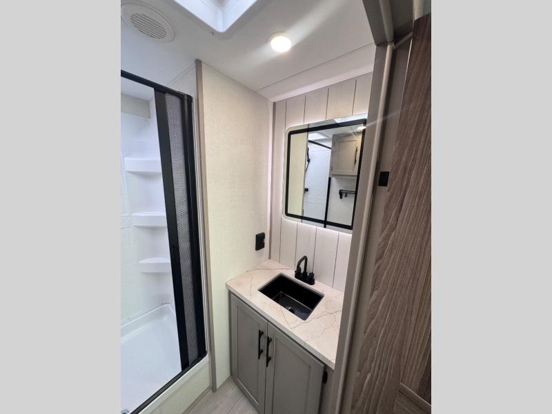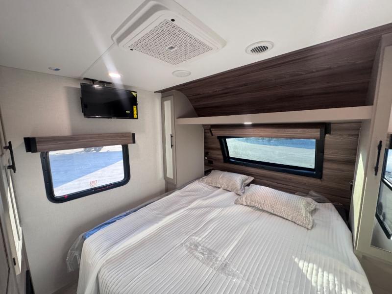 The KZ Connect travel trailer comes with an RV Airflow System which optimizes the airflow for your air conditioner. This improves performance, speeds up cooling times, and reduces noise in your trailer. Some of the other helpful features found on the Connect are the heated, insulated, and enclosed underbelly, the exterior docking station, the fiberglass front cap with front windshield, the 82" interior ceiling height, and the protective front diamond plate. There are some useful technological features, like the two LED motion-sensor lights, the HDMI and USB charger. The KZ Engage is powered by OneControl, and it monitors battery levels and controls slide rooms, the leveling system, the awning, inside/outside lighting, and the TPMS prep.