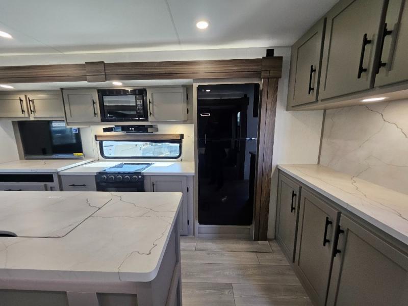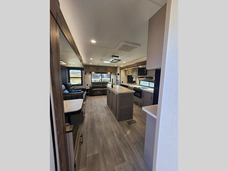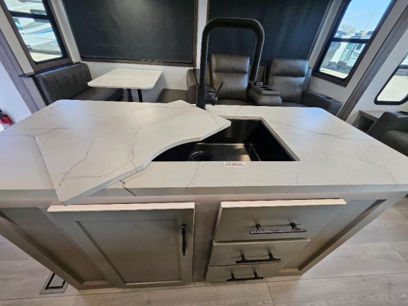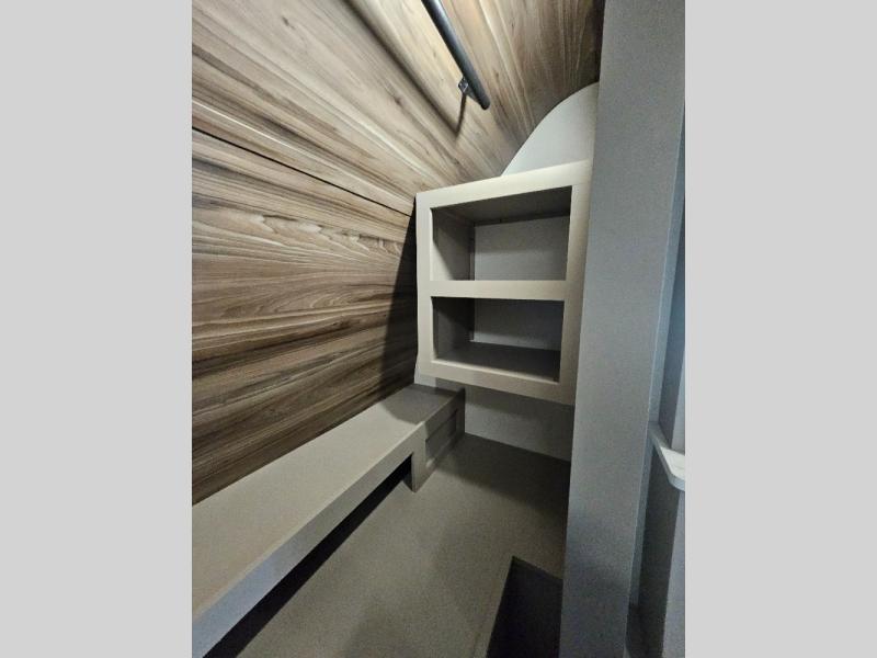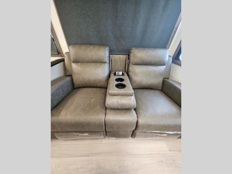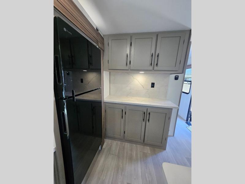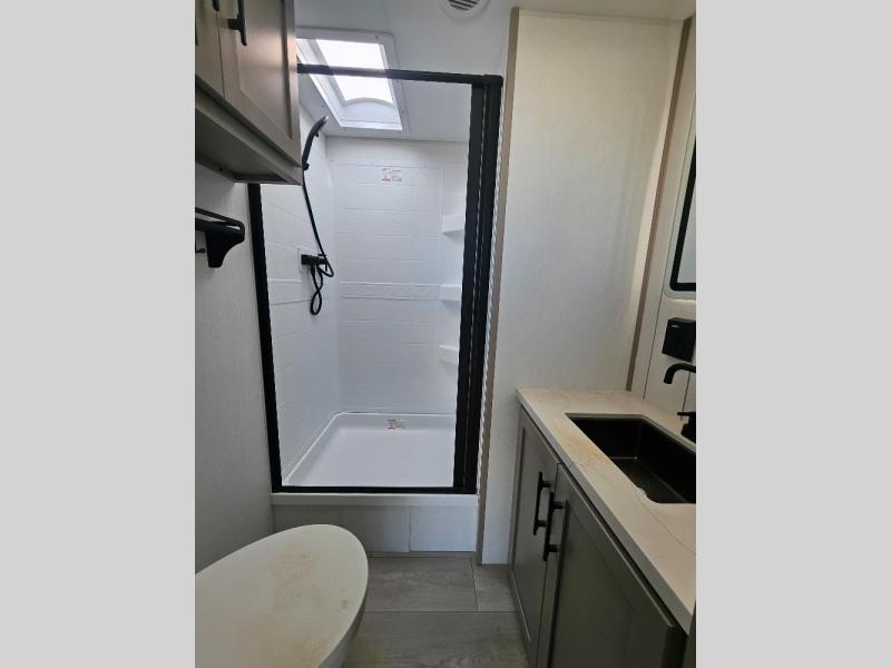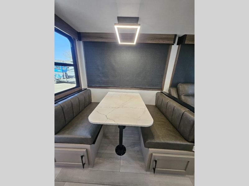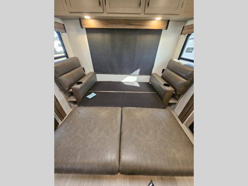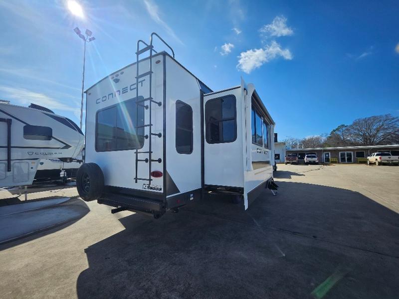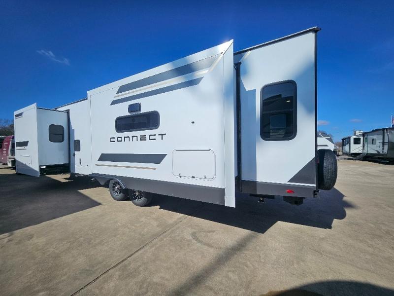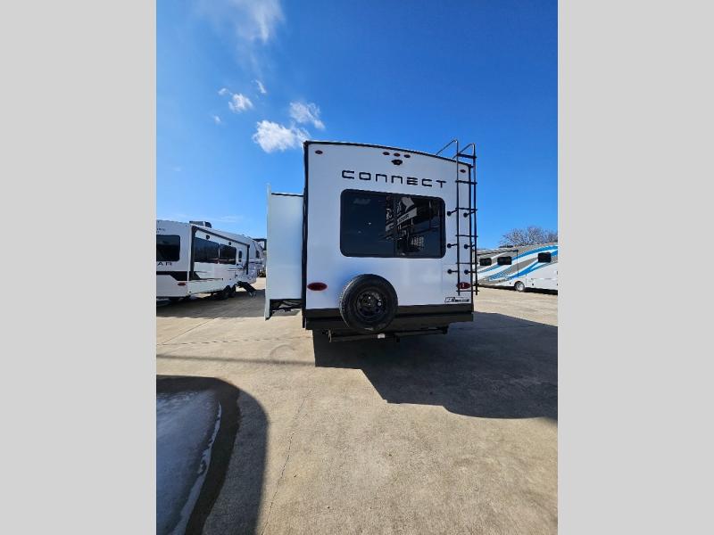 How about a nice afternoon of relaxing on the lake and then rinsing off in the 30" x 36" shower on this Connect travel trailer? After you get clean, you can grab a fresh change of clothes from the front walk-in closet and dresser in the private bedroom. The bedroom also has an area prepped for a washer and dryer and a king bed slide. Out in the main living area, you'll be able to prepare a meal without much effort at all since this trailer has a three-burner range, a microwave, a 10 cu. ft. 12V refrigerator, and a kitchen island for more prep space. You can even have your friends sit on the 70" sofa, theater seating, and booth dinette to chat with you while you finish the meal. You all will also benefit from the two electric awnings with LED lights on the exterior.
