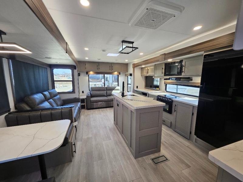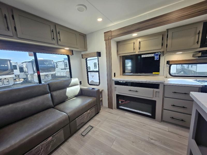 The KZ Connect travel trailer comes with an RV Airflow System which optimizes the airflow for your air conditioner. This improves performance, speeds up cooling times, and reduces noise in your trailer. Some of the other helpful features found on the Connect are the heated, insulated, and enclosed underbelly, the exterior docking station, the fiberglass front cap with front windshield, the 82" interior ceiling height, and the protective front diamond plate. There are some useful technological features, like the two LED motion-sensor lights, the HDMI and USB charger. The KZ Engage is powered by OneControl, and it monitors battery levels and controls slide rooms, the leveling system, the awning, inside/outside lighting, and the TPMS prep.