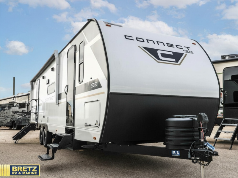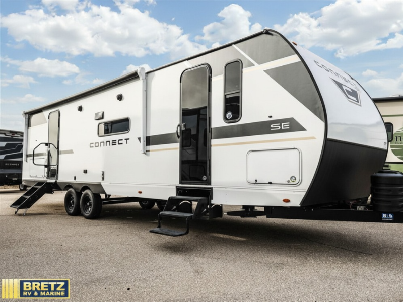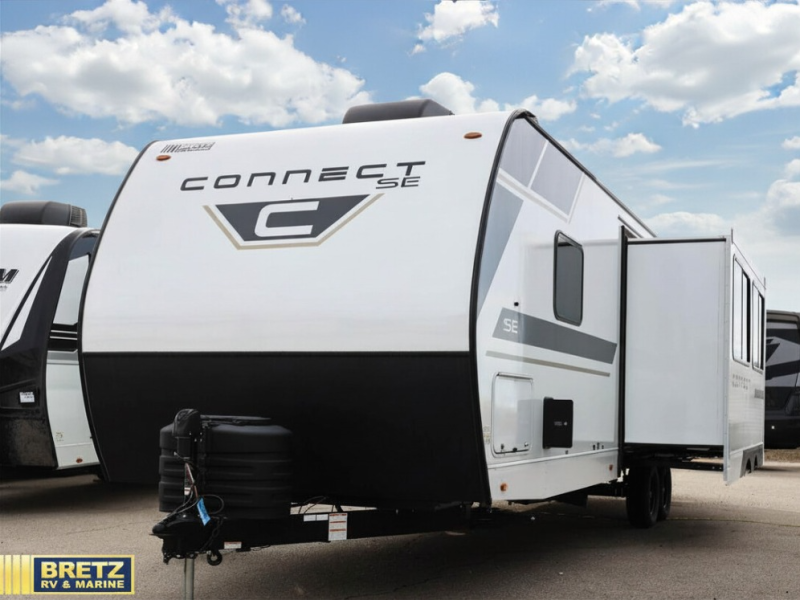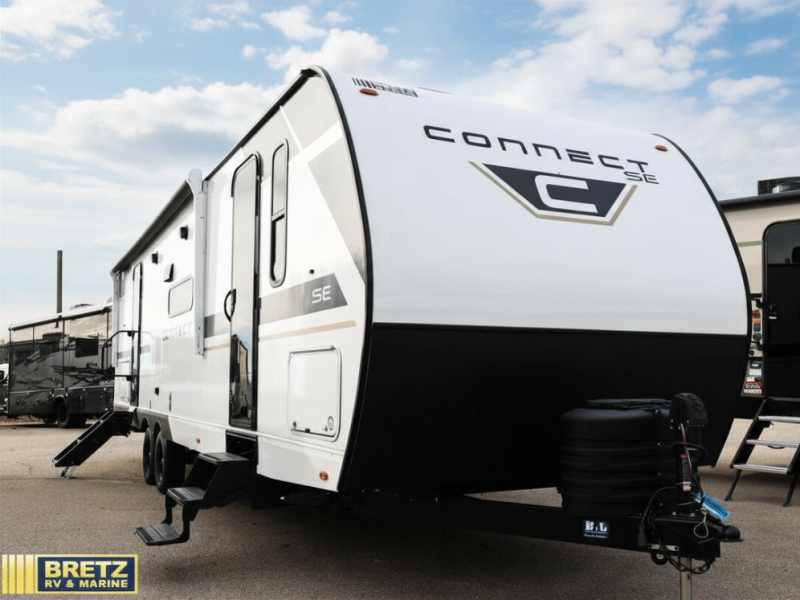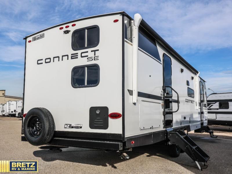 Each Connect SE travel trailer by KZ includes an NXG frame, which is a high quality, highly engineered frame that provides a lightweight yet strong foundation for your RV. The Climate package provides added insulation to extend your camping season year-round with a fully enclosed, insulated and heated underbelly to protect the tanks and pipes. Some top features include the 17-inch range with illuminated control knobs, the seamless countertops with a deep undermount stainless steel kitchen sink including a sink cover for added countertop space, and a black high-rise faucet. You will also enjoy the KZ Engage that is powered by OneControl to monitor and control the battery levels, the slide(s), the leveling system, the awning(s), plus the inside and outside lighting. Choose your favorite today!