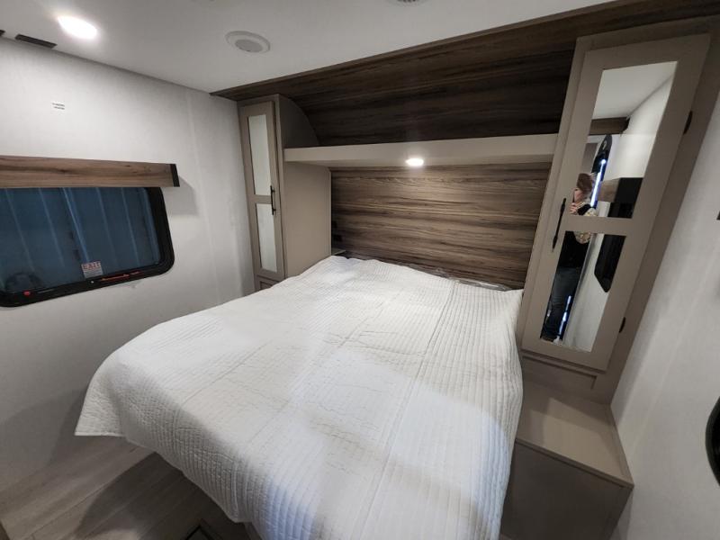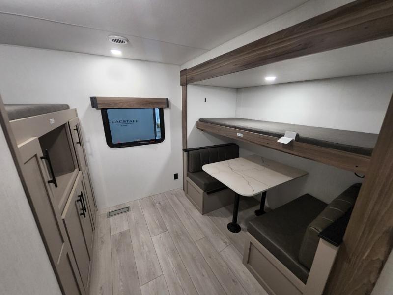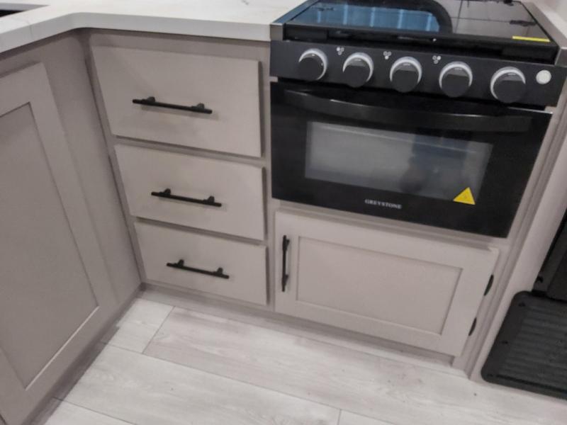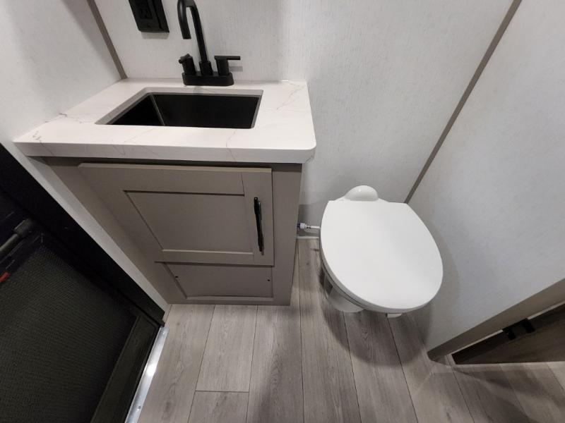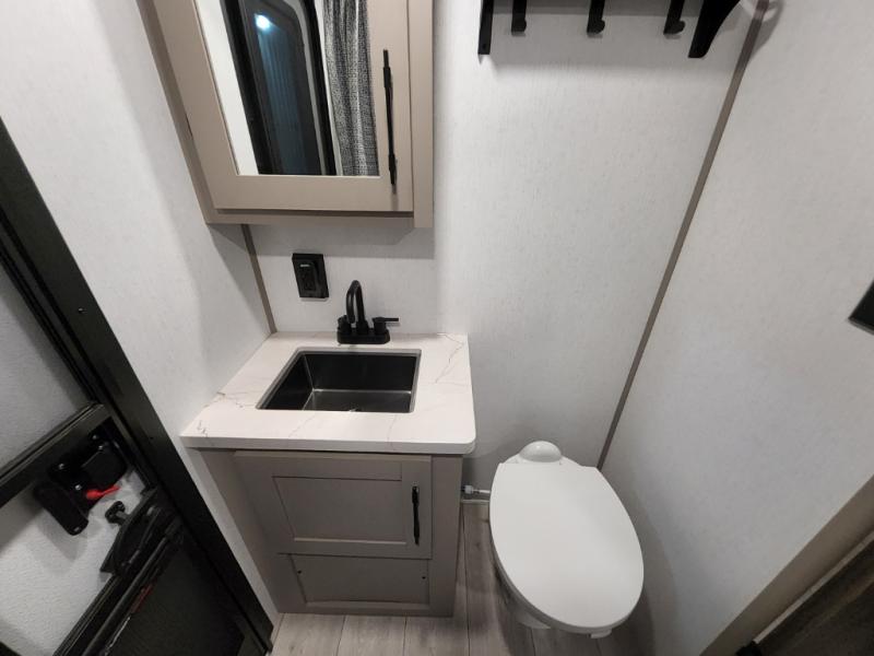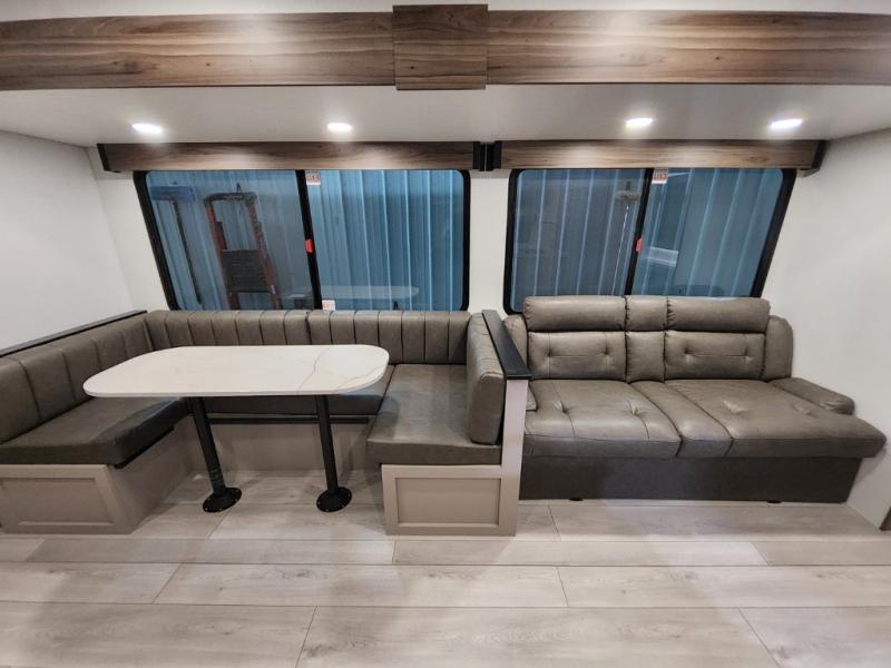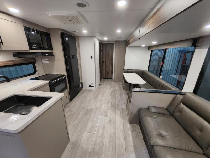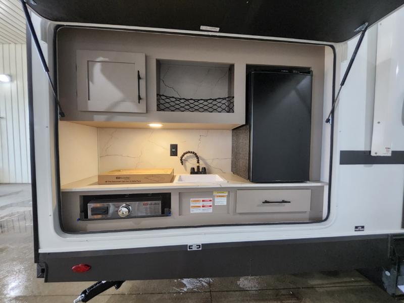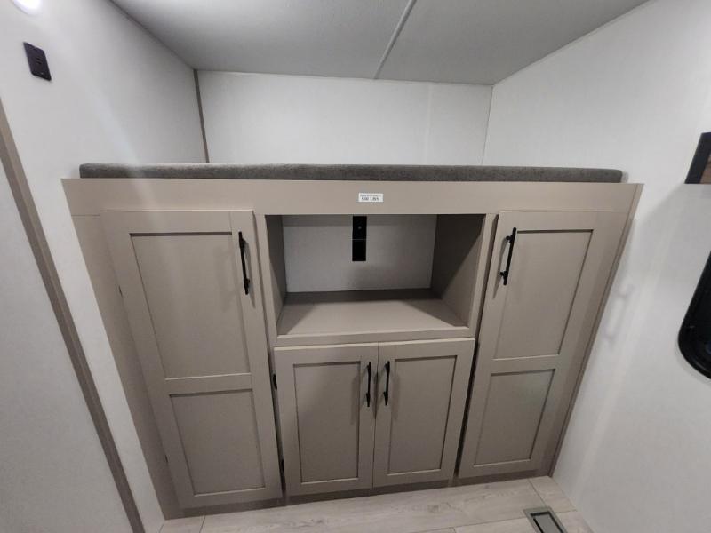 Your kids or your friends will love having their own privacy in the rear bunkhouse which offers two bunks and a dinette to play games or dine at, plus there is a closet for their storage. The full bathroom is conveniently located and includes the second exterior entry for quick and easy access to the fun happening outside. You will have your own private bedroom on the opposite side of the trailer, and it includes a walk-around queen bed, dual wardrobes and a sliding entry door. The main living and kitchen area is spacious with a large slide out, and you can relax on the 64" sofa or the 80" U-shaped dinette while the cook makes meals with full amenities including a 10 cu. ft. 12V refrigerator and a pantry for food storage.