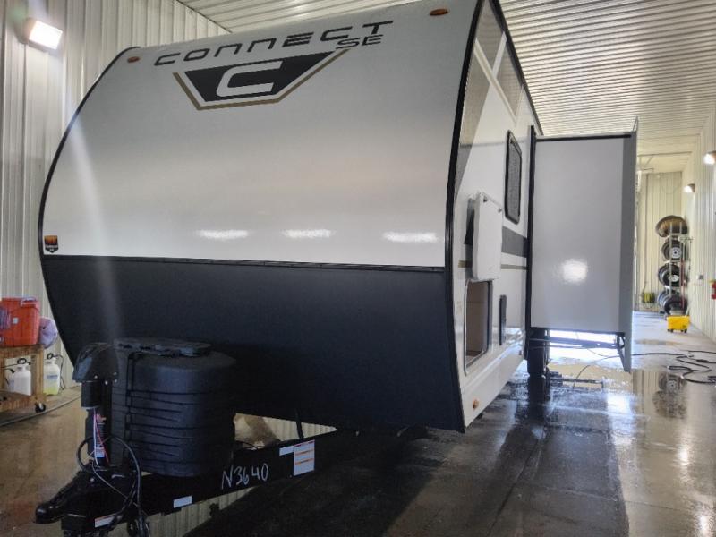 Each Connect SE travel trailer by KZ includes an NXG frame, which is a high quality, highly engineered frame that provides a lightweight yet strong foundation for your RV. The Climate package provides added insulation to extend your camping season year-round with a fully enclosed, insulated and heated underbelly to protect the tanks and pipes. Some top features include the 17-inch range with illuminated control knobs, the seamless countertops with a deep undermount stainless steel kitchen sink including a sink cover for added countertop space, and a black high-rise faucet. You will also enjoy the KZ Engage that is powered by OneControl to monitor and control the battery levels, the slide(s), the leveling system, the awning(s), plus the inside and outside lighting. Choose your favorite today!