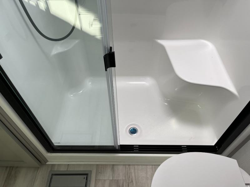 With any KZ Durango Gold full-time luxury fifth wheel, you will enjoy the new Blancher Maple and Morel Fog cabinetry, stainless steel appliances such as a 30" convection microwave and 24" oven with a four burner range, plus a stainless dishwasher. Other top features include an electric tilt bed with Serta Comfort foam king mattress, three 15K A/C units, plus theater seating with powered recline, heat and massage features. You will also appreciate a handy central vacuum system with attachments that stores out of sight. Each Durango Gold is constructed with six-sided aluminum framing, and has a heated, insulated and an enclosed underbelly. It is also constructed with Tufflex roofing material which is flexible, puncture resistant, and reflective. The now mandatory "Off The Grid" solar package includes two 200W solar panels, a 30A MPPT solar charge controller, and a 2,000W True Sine Wave inverter for off-grid capabilities.