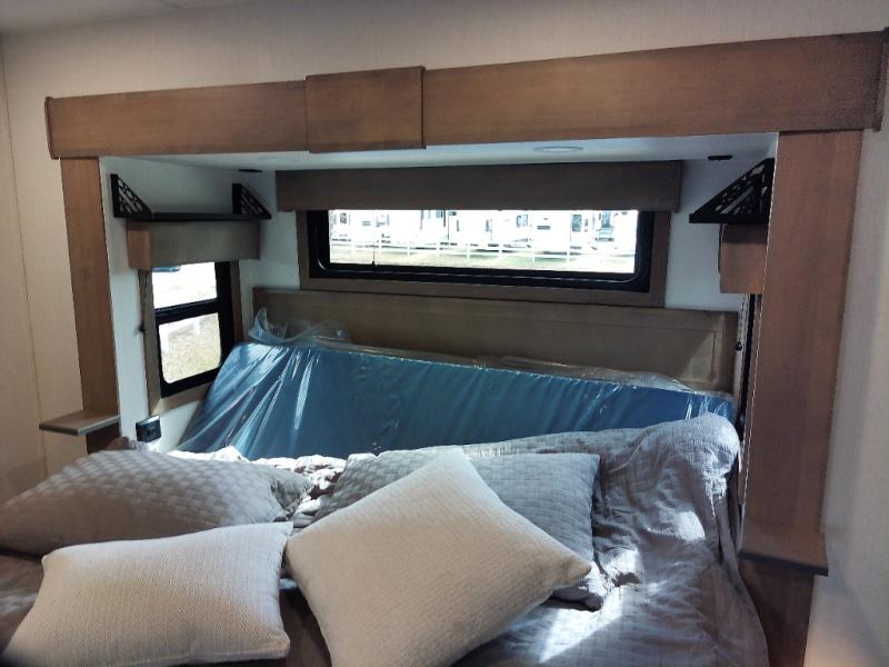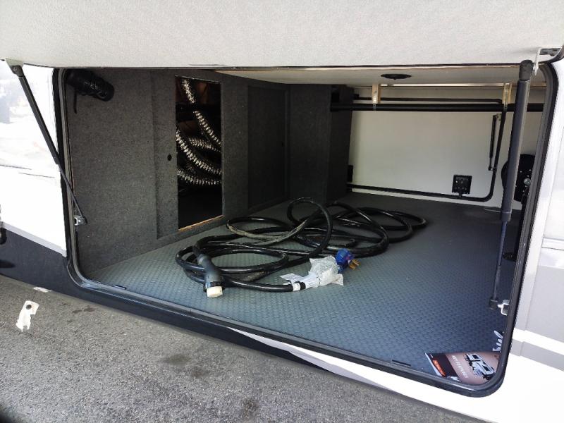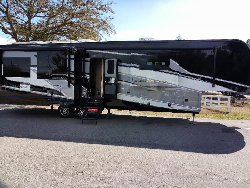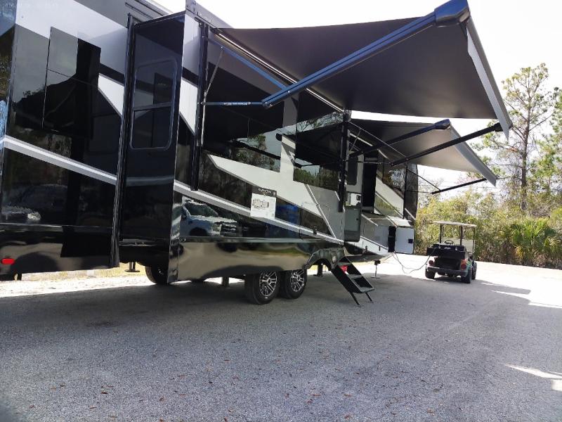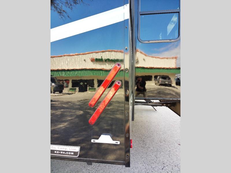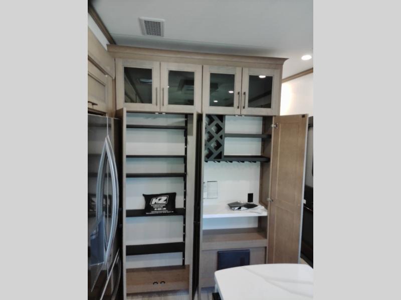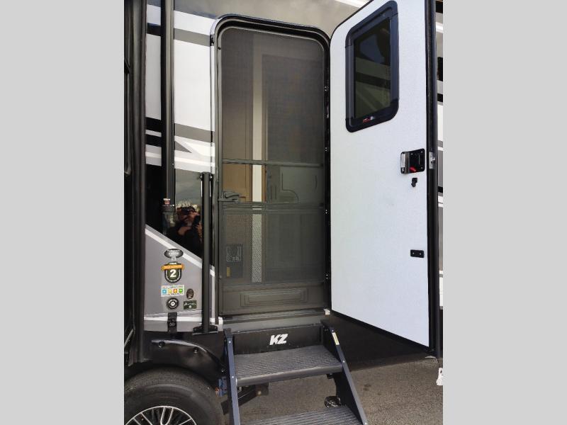 With any KZ Durango Gold full-time luxury fifth wheel, you will enjoy the new Blancher Maple and Morel Fog cabinetry, stainless steel appliances such as a 30" convection microwave and 24" oven with a four burner range, plus a stainless dishwasher. Other top features include an electric tilt bed with Serta Comfort foam king mattress, three 15K A/C units, plus theater seating with powered recline, heat and massage features. You will also appreciate a handy central vacuum system with attachments that stores out of sight. Each Durango Gold is constructed with six-sided aluminum framing, and has a heated, insulated and an enclosed underbelly. It is also constructed with Tufflex roofing material which is flexible, puncture resistant, and reflective. The now mandatory "Off The Grid" solar package includes two 200W solar panels, a 30A MPPT solar charge controller, and a 2,000W True Sine Wave inverter for off-grid capabilities.