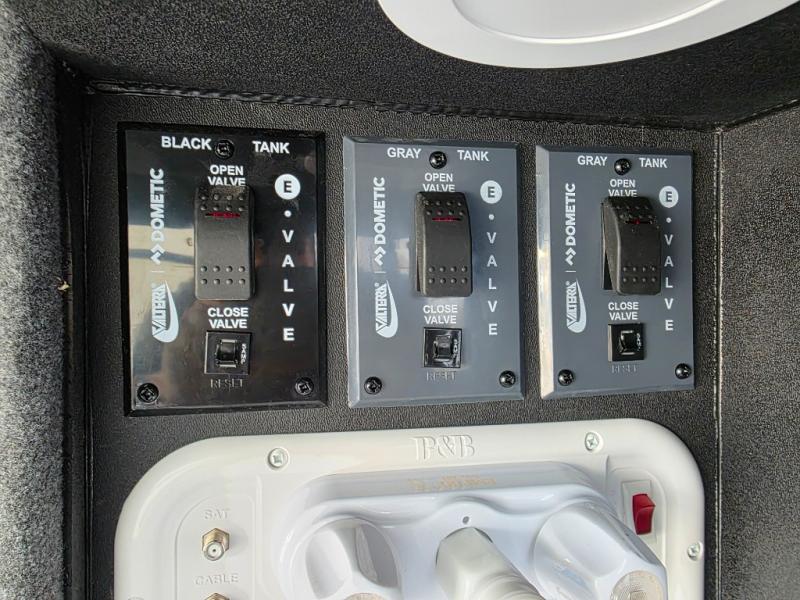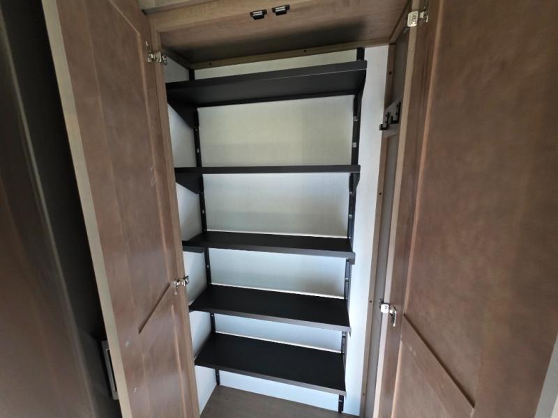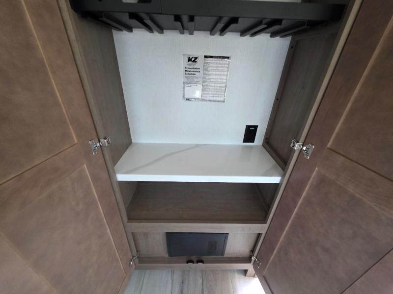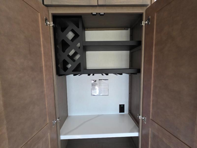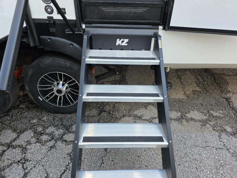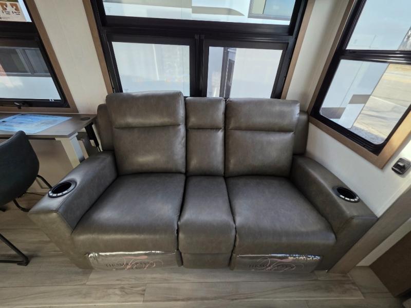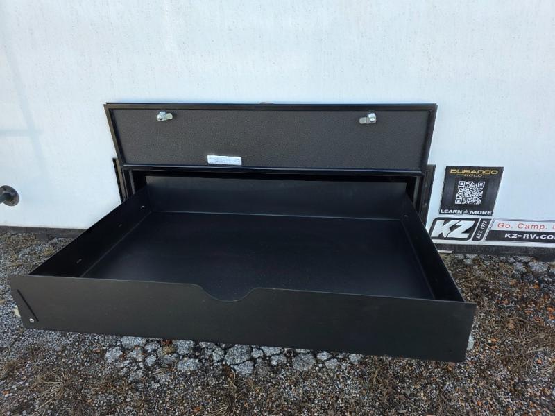 With any KZ Durango Gold full-time luxury fifth wheel, you will enjoy the new Blancher Maple and Morel Fog cabinetry, stainless steel appliances such as a 30" convection microwave and 24" oven with a four burner range, plus a stainless dishwasher. Other top features include an electric tilt bed with Serta Comfort foam king mattress, three 15K A/C units, plus theater seating with powered recline, heat and massage features. You will also appreciate a handy central vacuum system with attachments that stores out of sight. Each Durango Gold is constructed with six-sided aluminum framing, and has a heated, insulated and an enclosed underbelly. It is also constructed with Tufflex roofing material which is flexible, puncture resistant, and reflective. The now mandatory "Off The Grid" solar package includes two 200W solar panels, a 30A MPPT solar charge controller, and a 2,000W True Sine Wave inverter for off-grid capabilities.