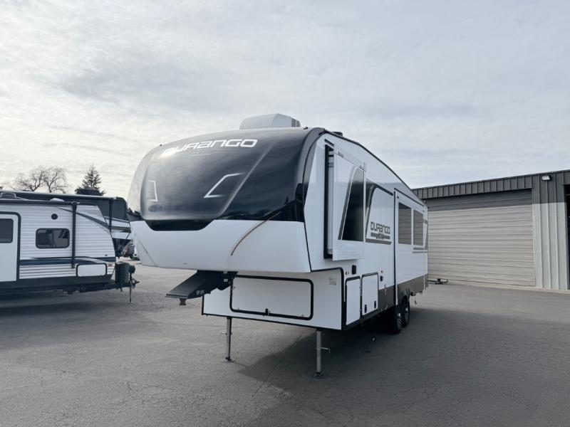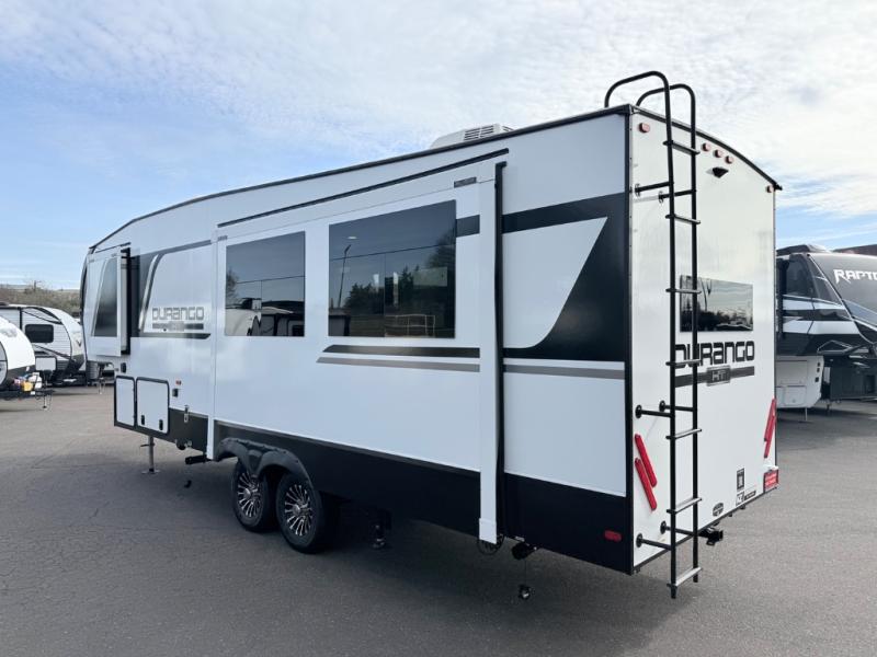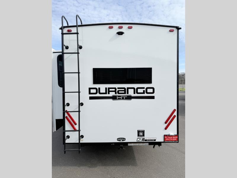 Each Durango Half-Ton fifth wheel by KZ provides lightweight towing with interior luxuries galore! Controlling the functions of your unit will be a breeze with the KZ Engage powered by OneControl that includes new integrated buttons & screen to control awnings, lights, tanks, and more. There are so many exterior conveniences to make each trip enjoyable, like the Dexter® axles with self adjusting brakes & height adjusting hangers metal latches on the baggage doors, heated water convenience center, and the flip-up main entry steps! Durable construction includes Tufflex PVC roofing, Pex® in-floor heated waterlines & kitchen gray pipes, and a reinforced heavy-duty fiberglass front cap. The interior will feel more like a residential home with new blancher cherry cabinets, seamless countertops, a spacious shower, a redesigned front bedroom, and smart storage spaces! You can also customize your fifth wheel to fit your needs with available options, such as, generator prep, wireless backup camera prep, a 32" exterior TV with bracket, and so much more!