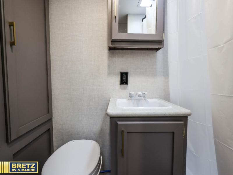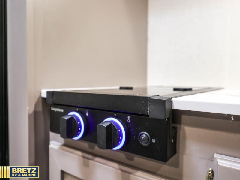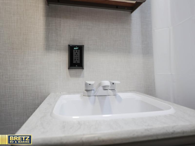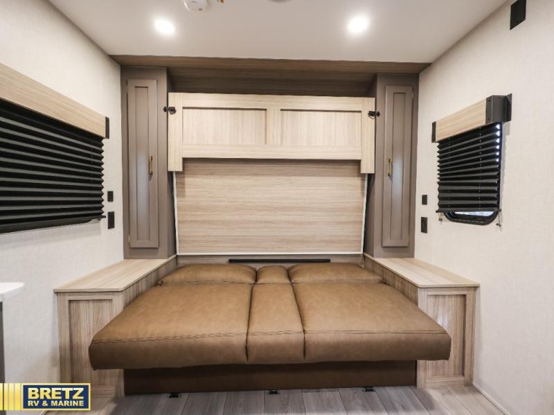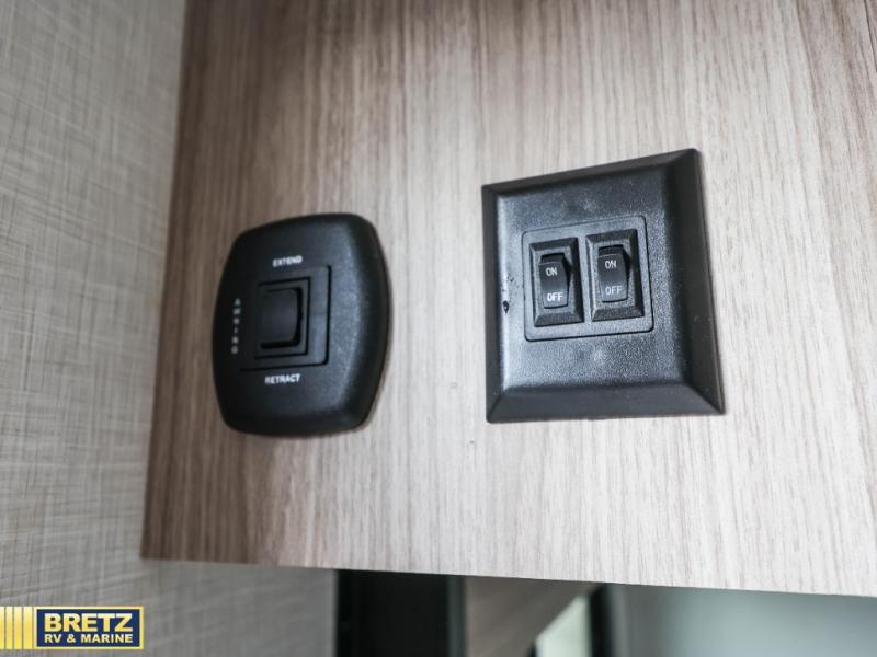 This versatile travel trailer is perfect for weekend trips to the lake. You'll sleep soundly each night on the 60" x 74" mattress, and there are dual bedside wardrobes to keep your things tidy. This model also includes a booth dinette that can be used for dining and sleeping space. The chef of your group can prepare meals on the two burner cooktop with a glass cover, and leftovers can go in the 8 cu. ft. 12V refrigerator. This model also includes a 12' power awning that will provide shade while you're outdoors as well.