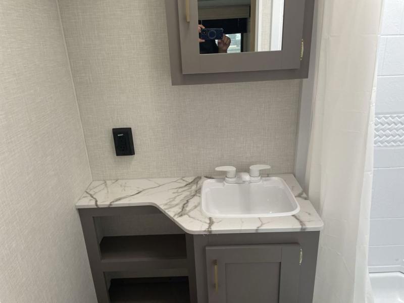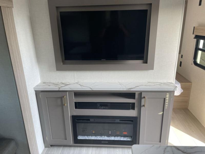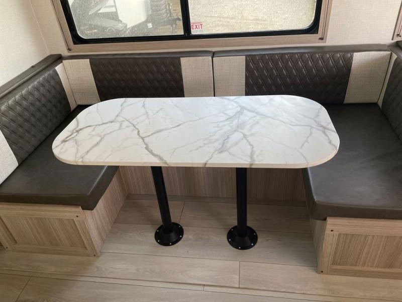Wow! Take a look at this travel trailer with two private bedroom that include queen beds and space to store your clothes. Each room also has a TV mount if you choose to bring along your own television for late-night movies in bed. The main living area is spacious with the large slide out, and here you can relax on the sofa or around the U-shaped dinette. This model also includes a full bath with a 40" shower that will allow you to clean up each day.