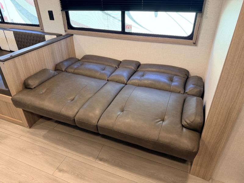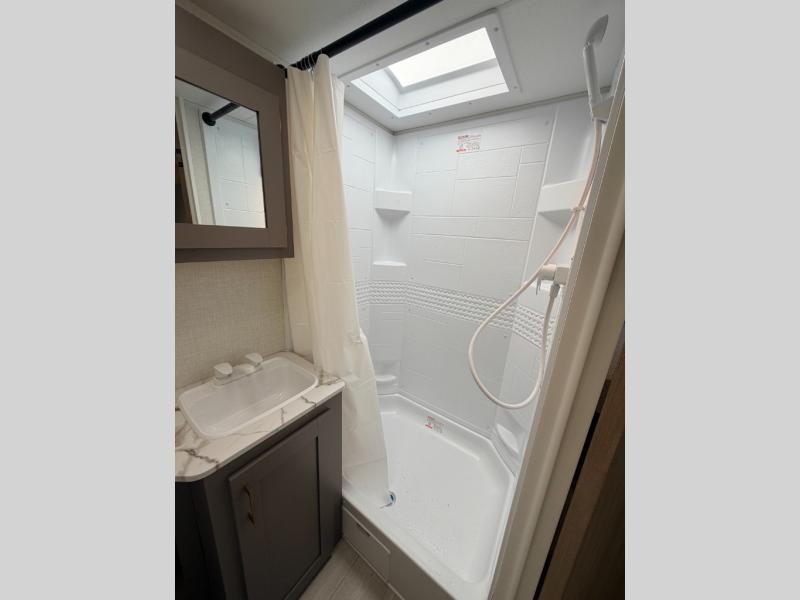 Wow! Take a look at this travel trailer with two private bedroom that include queen beds and space to store your clothes. Each room also has a TV mount if you choose to bring along your own television for late-night movies in bed. The main living area is spacious with the large slide out, and here you can relax on the sofa or around the U-shaped dinette. This model also includes a full bath with a 40" shower that will allow you to clean up each day.