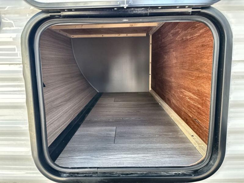 Each Sportsmen SE travel trailer and toy hauler by KZ is constructed with KZ exclusive tough shield exterior metal, a one-piece seamless walk-on Tufflex roofing material, and diamond plate rock guard to protect your unit from road debris. You will appreciate the extra large baggage doors for stowing away your gear when not in use, and tinted windows to help keep the harmful sun rays out plus keeping it cooler inside. Some of the exterior conveniences found in the mandatory Advantage Package are the solid folding steps with a large folding grab handle for easy entry and exit, a full glass friction hinged entry door, plus an exterior shower for your pets or to rinse off before you head inside. You'll also appreciate the nitrogen-filled tires, solar and backup camera prep, plus a Leash Latch with a bonus beverage opener. You'll feel right at home inside with linoleum flooring throughout, a 13,500 BTU air conditioner, large overhead cabinets, a shower surround, and much more!