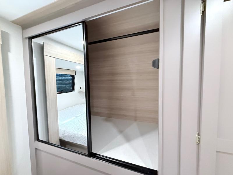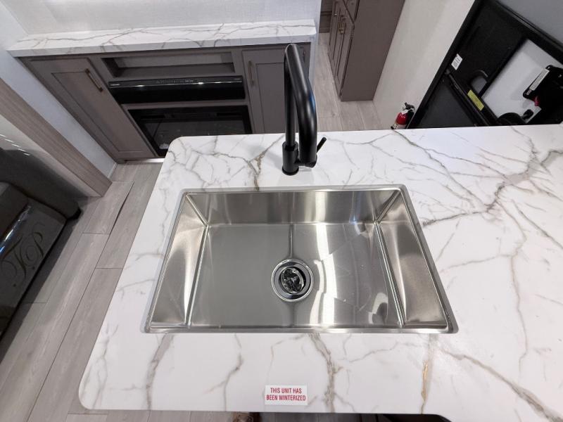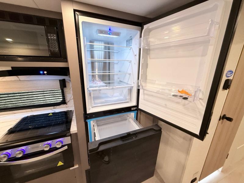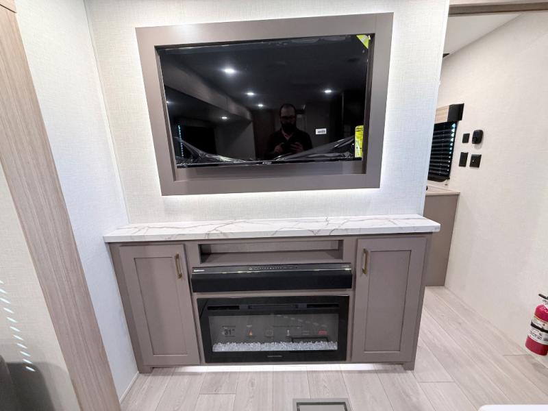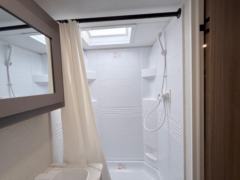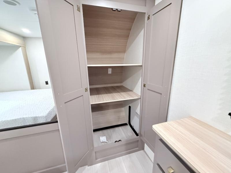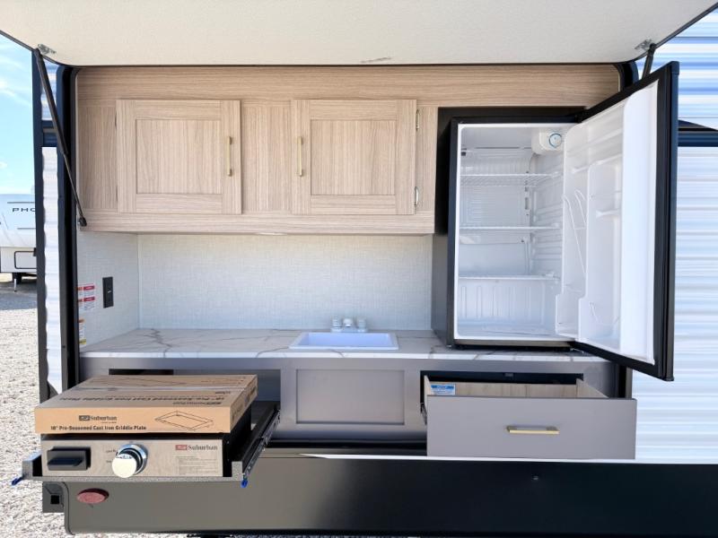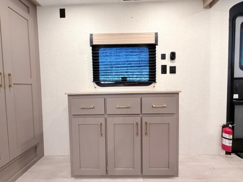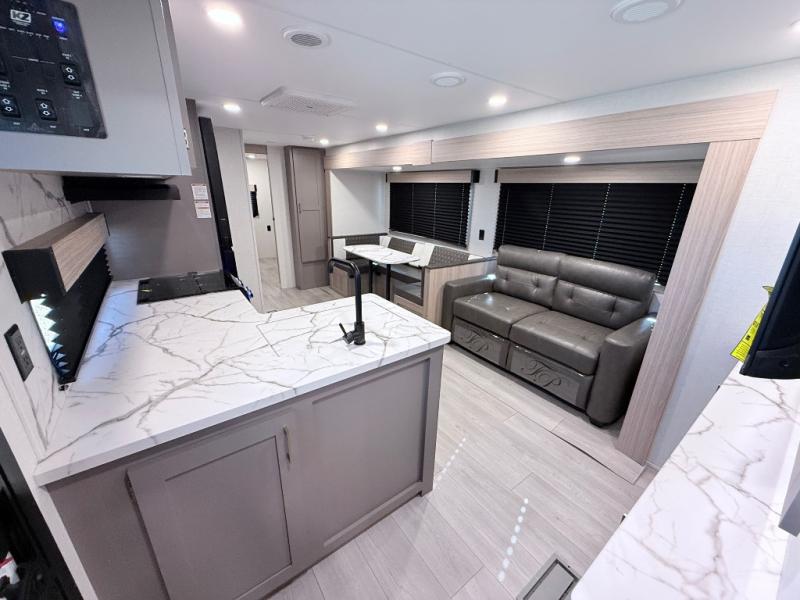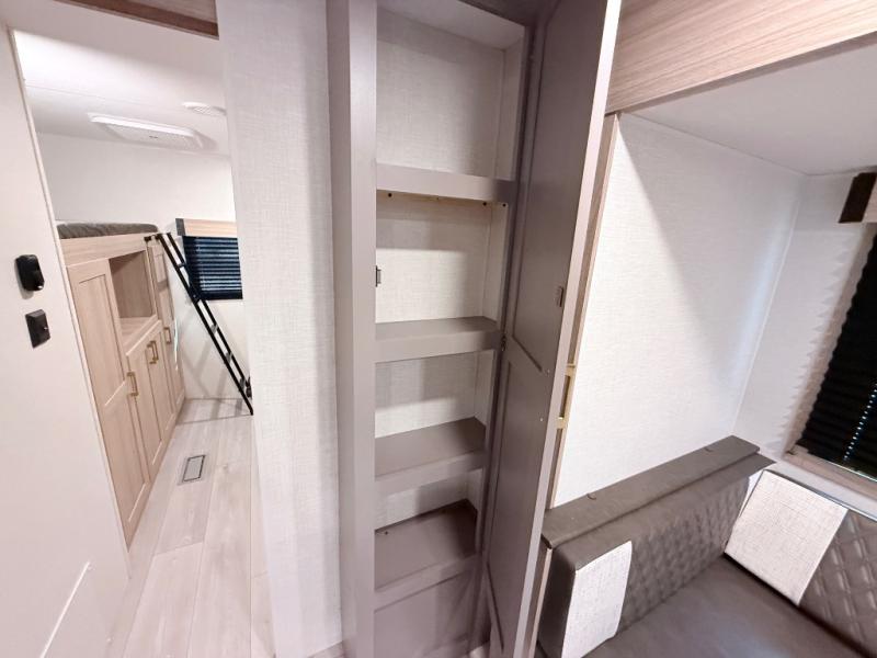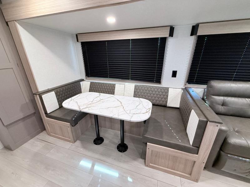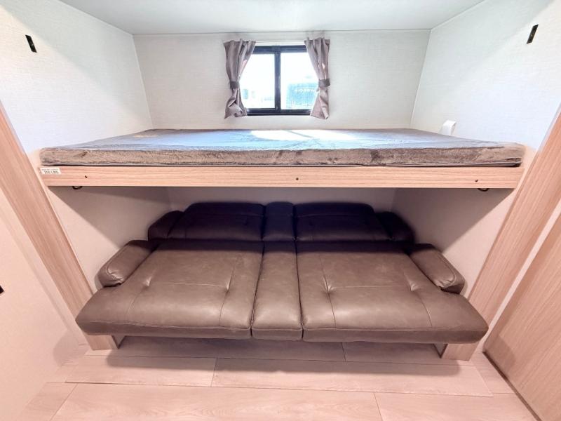 If you've been looking for a travel trailer with plenty of space for your family or group of friends, look no further than this one! The private bunkhouse includes a bunk/closet plus a jackknife sofa with a hinge bunk above. And the full bath is close by for convenience. Everyone can gather in the main living area at the U-shaped dinette, and there is a sofa here for more seating space. If the weather is nice, head outdoors to relax under the 20' power awning with LED lights as the cook prepares dinner on the outside griddle!