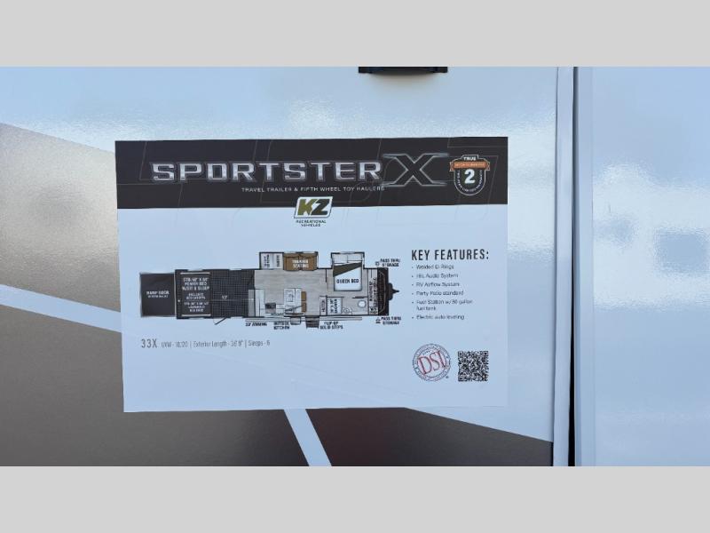 KZ Sportster X toy hauler travel trailer 33X highlights: