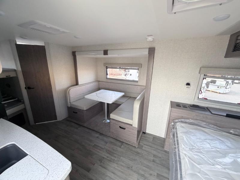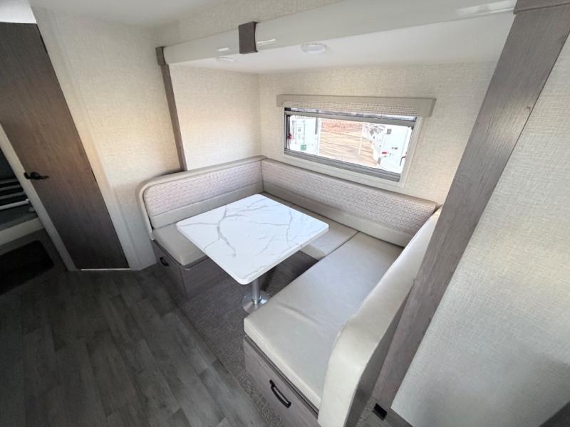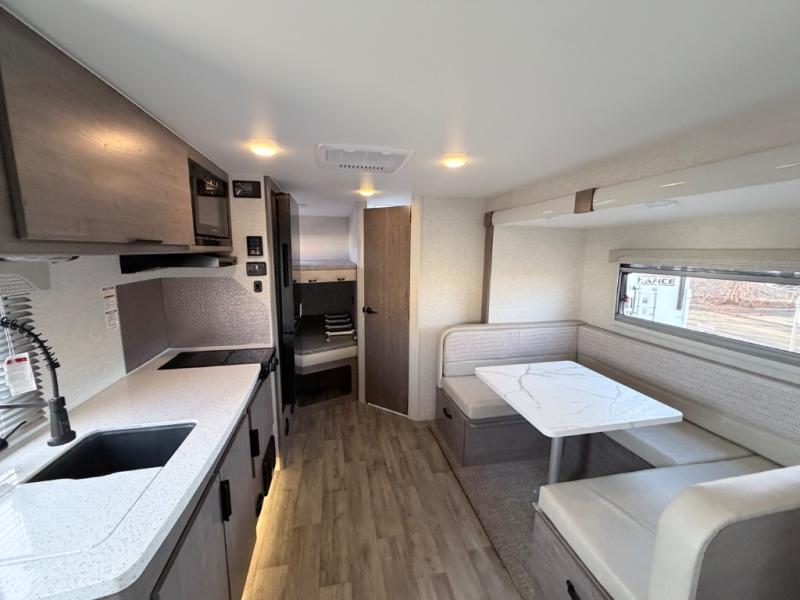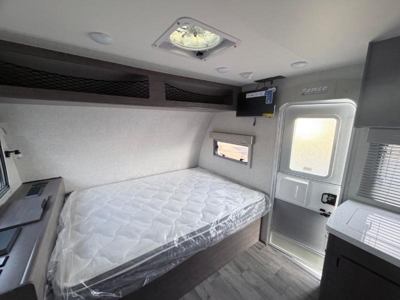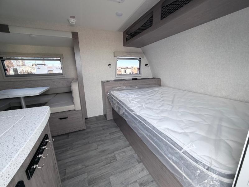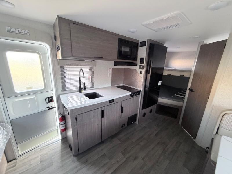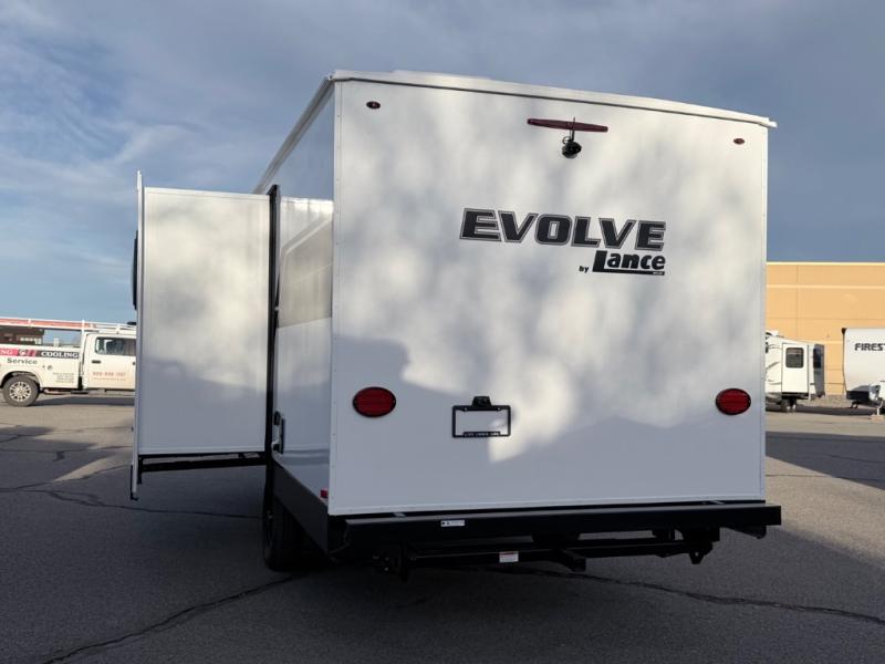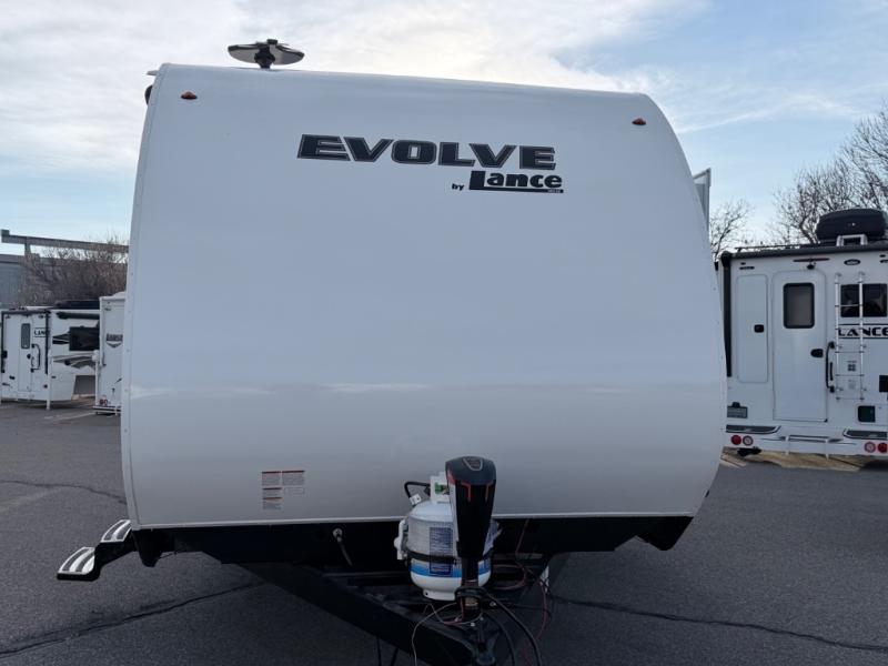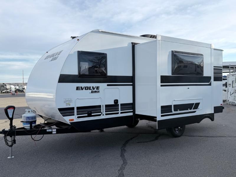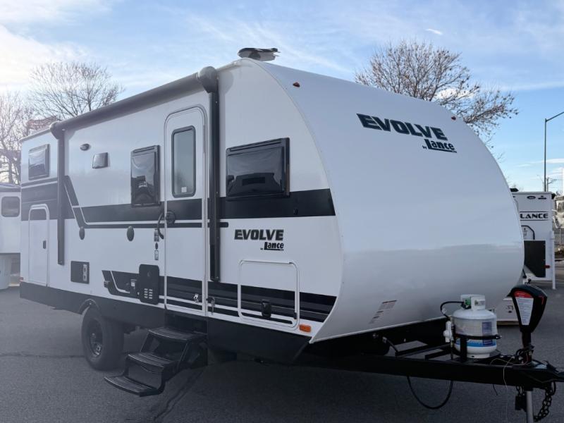 With any Evolve travel trailer by Lance, you will find a modern design, a durable build, and comfortable features to make the camping lifestyle easier than ever! Each one is built with aluminum framed sidewalls, floor and ceiling, block foam insulation throughout, and a laminated fiberglass bonded exterior with Azdel substrate. There are also Keyed-Alike storage compartment doors, an exterior wash station, and a torsion axle suspension for smooth towing. The electrical features will keep your adventures going with a 60-amp converter/loadcenter, a dual battery rack, 12V/USB charging port(s), and a systems monitor panel for easy access to your unit's functions. You will also find Lite-Ply cabinet construction inside, along with decorative backsplash, solid surface, lightweight countertops and table, and many more comforts!