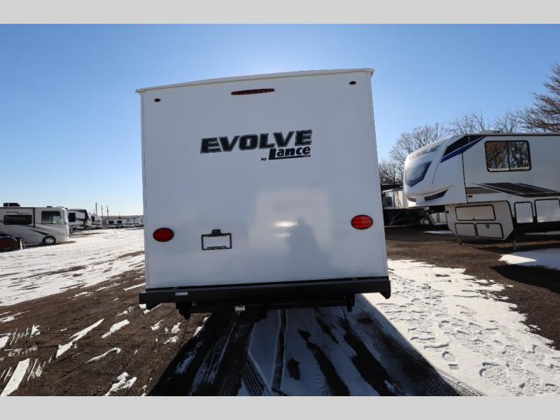With any Evolve travel trailer by Lance, you will find a modern design, a durable build, and comfortable features to make the camping lifestyle easier than ever! Each one is built with aluminum framed sidewalls, floor and ceiling, block foam insulation throughout, and a laminated fiberglass bonded exterior with Azdel substrate. There are also Keyed-Alike storage compartment doors, an exterior wash station, and a torsion axle suspension for smooth towing. The electrical features will keep your adventures going with a 60-amp converter/loadcenter, a dual battery rack, 12V/USB charging port(s), and a systems monitor panel for easy access to your unit's functions. You will also find Lite-Ply cabinet construction inside, along with decorative backsplash, solid surface, lightweight countertops and table, and many more comforts!