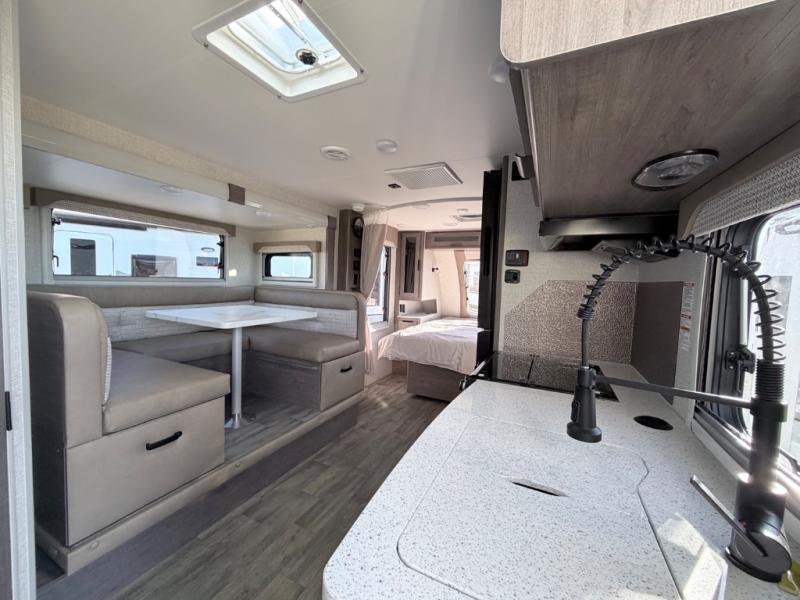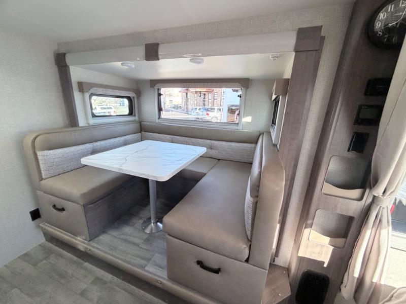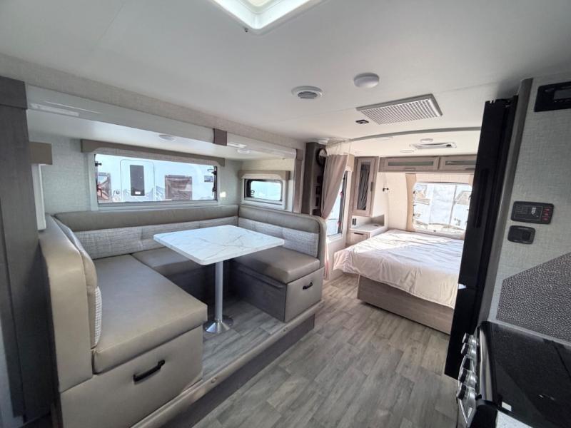 The main difference between this Lance travel trailer and model 1985 is that this unit offers you more storage space in the back in place of the full rear bath! The bathroom has a dual-pane skylight to let in natural sunlight as you get ready in the morning, and the deluxe queen pillowtop innerspring mattress with a bedspread and two LED reading lights is at the other end of the trailer. This bed can be sectioned off by drawing the privacy curtain, and the U-shaped dinette will provide sleeping accommodations for two more people. If you prefer, you can even change out the bed for the optional convertible sofa bed. Each person will benefit from a hot meal prepared in the kitchen on the stainless steel three-burner range!