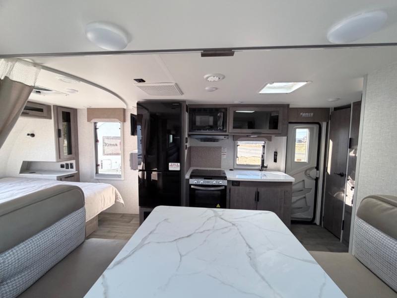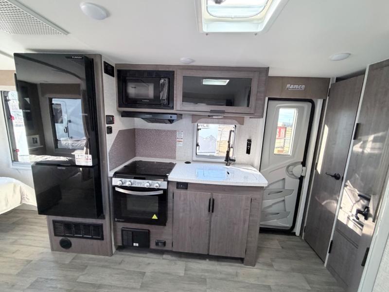 The line-up for the Lance travel trailers centers around three gorgeous interior décor options, a lengthy list of product enhancements, and simplification of ordering with many optional features being made standard. Some of the stand out features you'll want to take note of are the Keyed-Alike storage compartment doors for all of your camping essentials, the dual layer Azdel composite to prevent your unit from rotting, and the durable one-piece roof. The interior includes Euro overhead cabinetry designs, a pop-up electrical/charging tower, and a Shower Miser water system. You'll also find an innerspring mattress with a bedspread, a dual pane shower skylight, USB charging ports to keep your electronics at 100%, plus a JBL AM/FM stereo and JBL interior/exterior Bluetooth speakers to keep the party going!