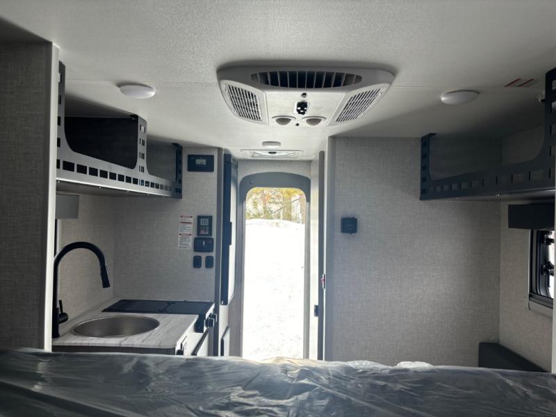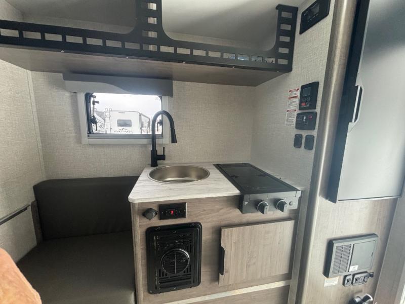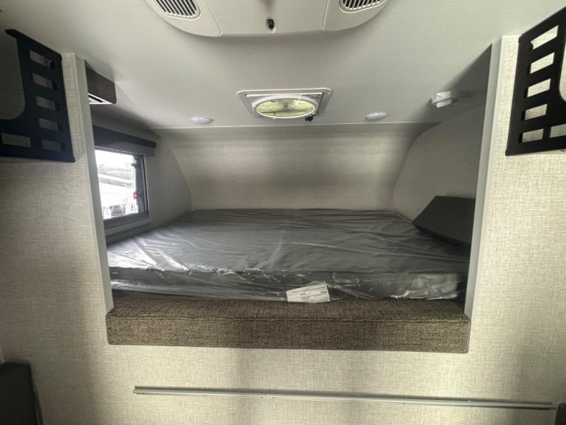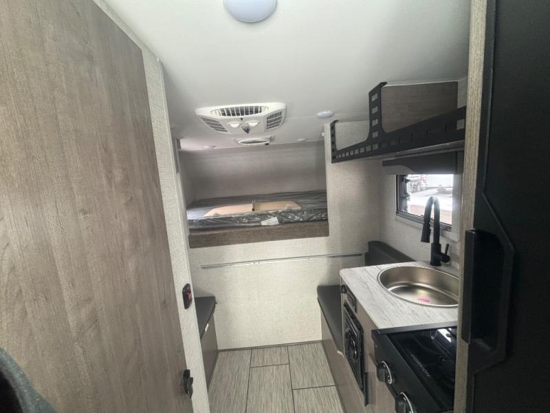 This lightweight truck camper is perfect for short bed trucks. The compact galley includes a two-burner cooktop, a stainless-steel sink, and a 12V refrigerator to keep your food fresh. A dinette provides a place to dine together or play games in the evening, and there is Molle-backed cabinet framing for extra storage. You will appreciate the wet bath with ducted heat and foot flush marine toilet, so you don't have to leave your camper in the middle of the night. A queen-size bed will provide a great night's rest, while the reading lights let you stay up late with a book!