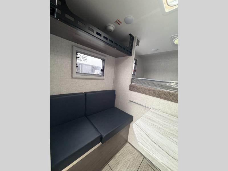 With any Squire Truck Camper by Lance, you will enjoy superior quality with a great value! They are constructed with aluminum framed walls, block foam insulation, and Azdel interior walls for added durability. There is lite-ply cabinet construction inside, along with Surf-X suedo solid surface lightweight countertops, overhead Molle panel storage space, and 12V/USB charging ports in the dinette and cab-over areas for your electronics. To further customize your truck camper, consider adding the optional air conditioner, backup camera, and more available options!