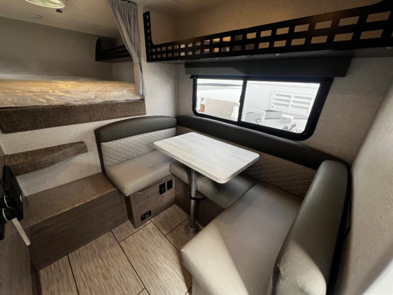 With any Squire Truck Camper by Lance, you will enjoy superior quality with a great value! They are constructed with aluminum framed walls, block foam insulation, and Azdel interior walls for added durability. There is Euro-ply cabinet construction inside, along with Surf-X suedo solid surface lightweight countertops, overhead Molle panel storage space, and 12V/USB charging ports in the dinette and cab-over areas for your electronics. To further customize your truck camper, consider adding the optional air conditioner, backup camera, electric side awning, and more available options!