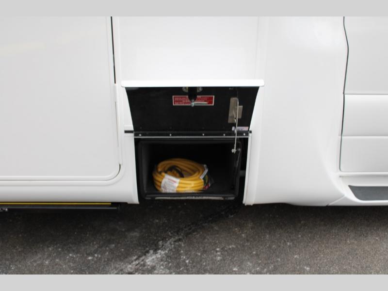 You will be impressed with this Unity Class B+ diesel motorhome because of the unique rear living space that has a sectional sofa, adjustable ottoman, and flexible bathroom door that will fold inward or outward depending on where you need the extra space. With a wardrobe, a bathroom medicine cabinet, and a large pull-out pantry, there is no doubt that you will be able to find storage space for all of your belongings, and having two living areas, a Murphy bed for nighttime, and a flush-mount LP cooktop to make meals will let you travel for however long you like.