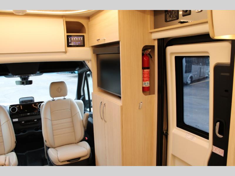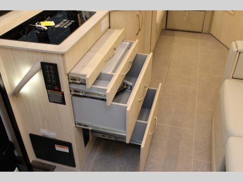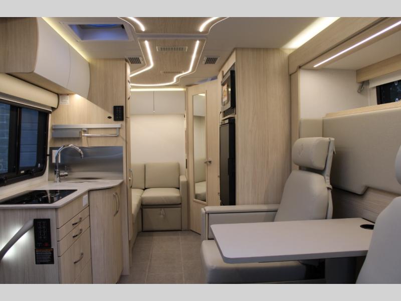 Each Unity Class B+ diesel motorhome by Leisure Travel sits on a durable Mercedes-Benz Sprinter 3500 dual rear wheel chassis with a 2.0-L Turbocharged I-4 diesel engine to power your adventures. The powder coated steel undercarriage support structure and vacuum-bonded construction provide a coach that will last for years, and there are eight sleek exterior paint options to make the coach your own. You'll love driving the Unity with its electronic stability control, adaptive cruise control, 9-speed automatic transmission with quieter noise levels and more comfort. There is even a digital mirror with sharp high-resolution that can be switched between convectional display and digital display for convenience. The luxurious interior includes Ultraleather furniture, a contoured solid surface Corian countertop in the kitchen, new decor options, plus many more comforts. And all of your power need will be met with 270-Ah, 12V Lithium coach batteries with an internal heating system, plus a 3000W pure sine inverter and a 30 Amp power cord. If you choose the optional 60th Anniversary Edition, you will enjoy the Diamond White exterior paint, diamond-quilted upholstery, Cool Ice Ultrafabrics, matte black hardware, and more elegant features that are exclusive to this package!