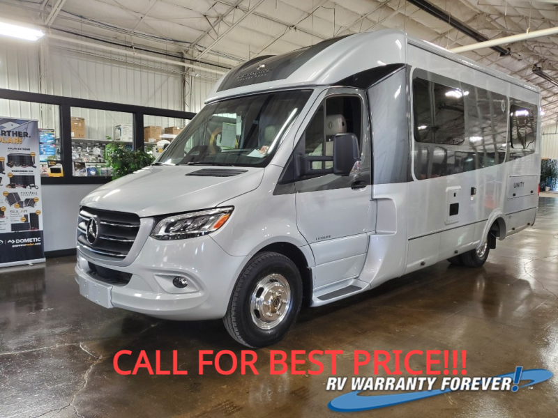 Each Unity Class B+ diesel motorhome by Leisure Travel sits on a durable Mercedes-Benz Sprinter 3500 dual rear wheel chassis with a 2.0-L Turbocharged I-4 diesel engine to power your adventures. The powder coated steel undercarriage support structure and vacuum-bonded construction provide a coach that will last for years, and there are eight sleek exterior paint options to make the coach your own. You'll love driving the Unity with its electronic stability control, adaptive cruise control, 9-speed automatic transmission with quieter noise levels and more comfort. There is even a digital mirror with sharp high-resolution that can be switched between convectional display and digital display for convenience. The luxurious interior includes Ultraleather furniture, a contoured solid surface Corian countertop in the kitchen, new decor options, plus many more comforts. And all of your power need will be met with 270-Ah, 12V Lithium coach batteries with an internal heating system, plus a 3000W pure sine inverter and a 30 Amp power cord. If you choose the optional 60th Anniversary Edition, you will enjoy the Diamond White exterior paint, diamond-quilted upholstery, Cool Ice Ultrafabrics, matte black hardware, and more elegant features that are exclusive to this package!