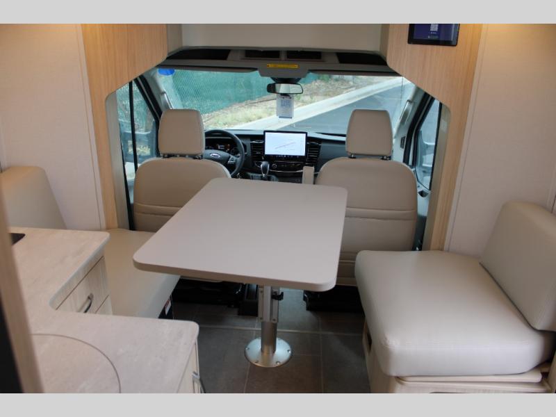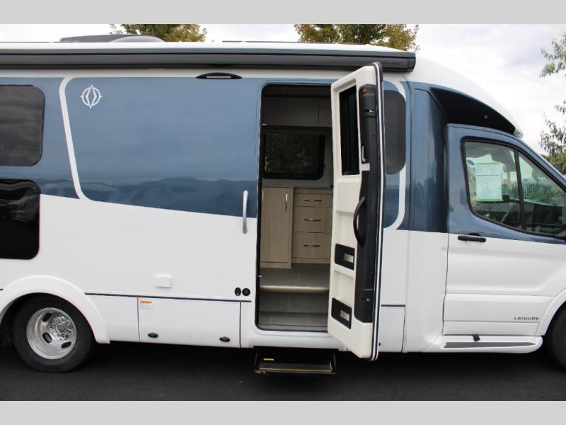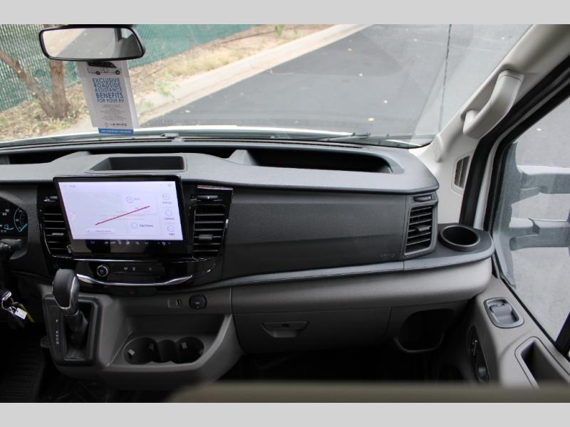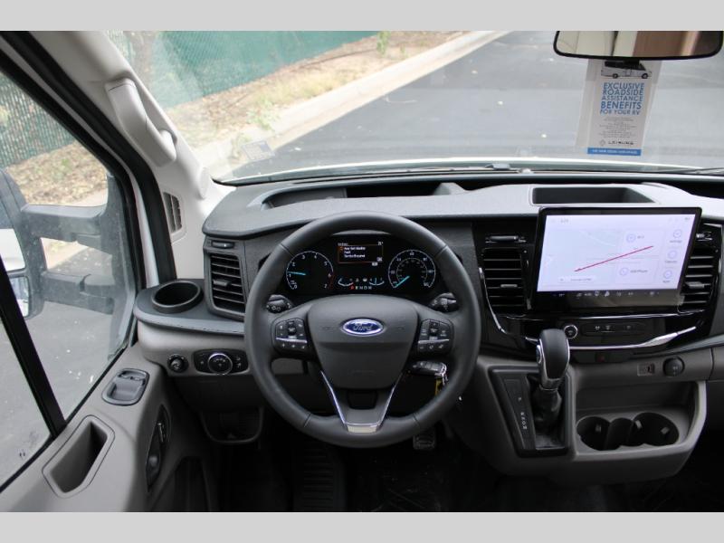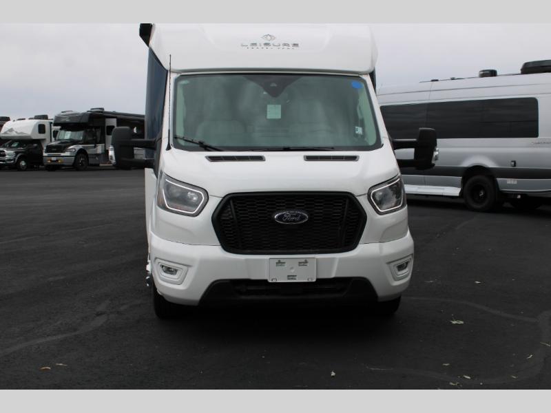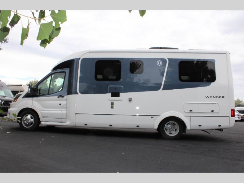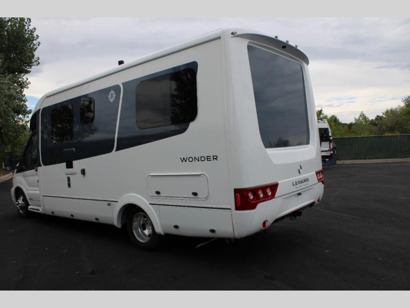 With any Leisure Travel Wonder Class B+ gas motorhome, the construction includes vacuum bonded aluminum framed insulated contoured sidewalls and a domed roof with fiberglass exterior, and a floor with composite exterior on a Ford Transit dual rear wheel chassis. Some highlights include the 16" heavy-duty forged aluminum alloy wheels, the auto high-beam headlamps, and the advance active safety features. The interior offers the SYNC 4 navigation system, curved soft close overhead cabinetry doors with hidden catches, full extension ball bearing soft close drawer tracks, LED aisle lighting and above cabinet hidden accent lights, and tile look vinyl flooring throughout for style and easy care. Optional AWD is available, along with the optional 60th Anniversary Edition decor and exterior color, solar panels for off-grid capability, a battery upgrade, and more!