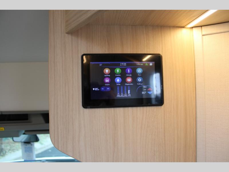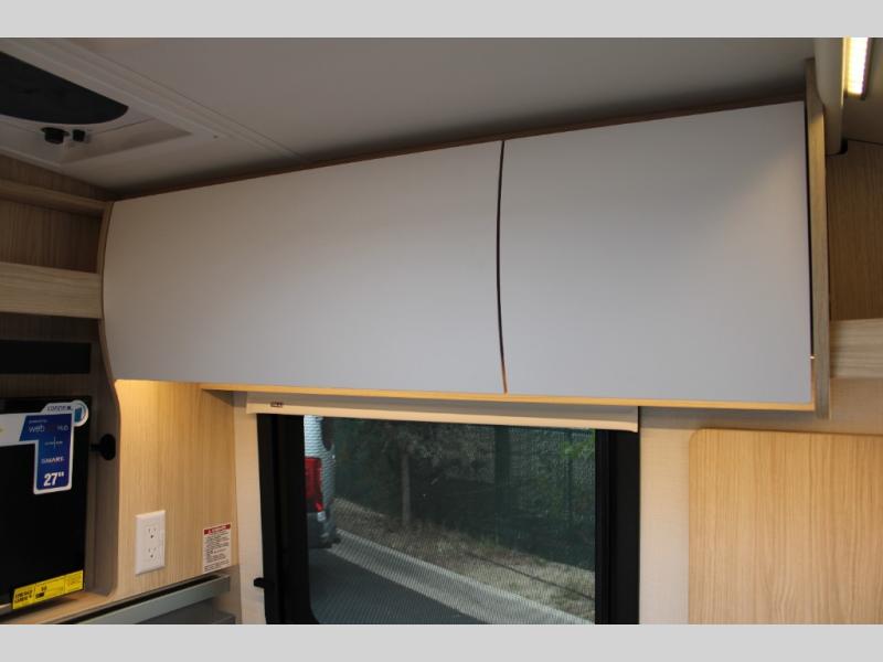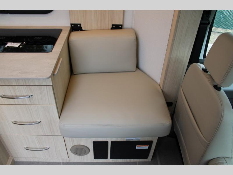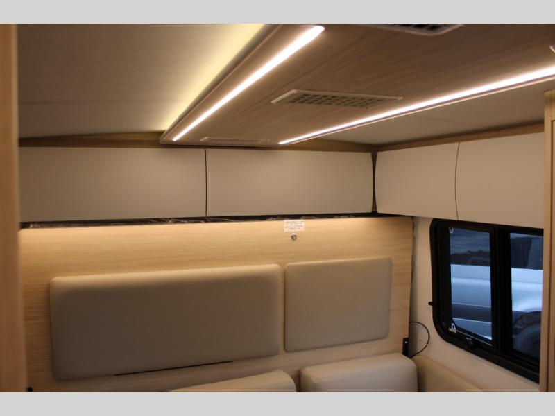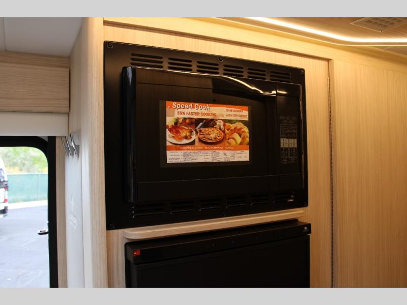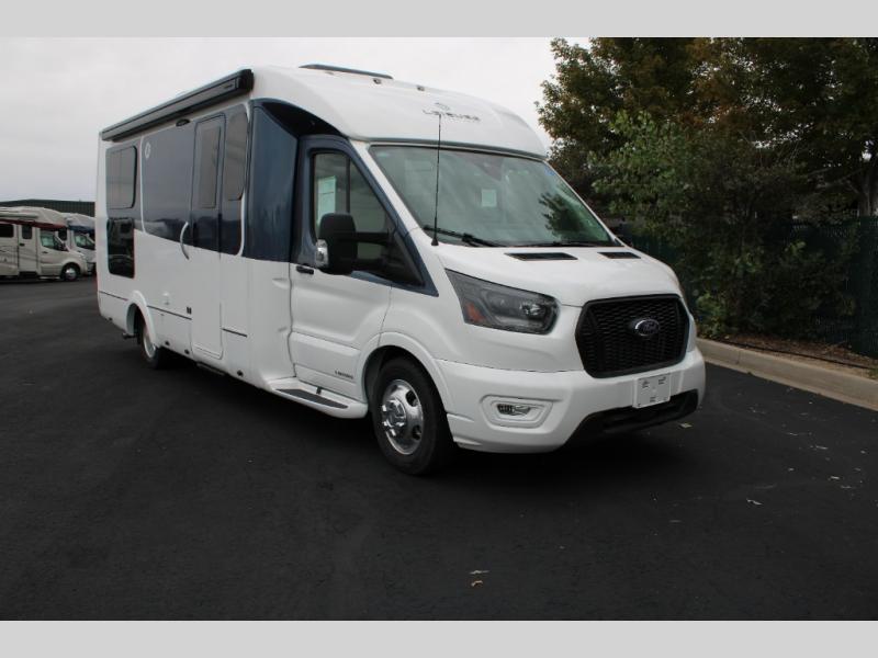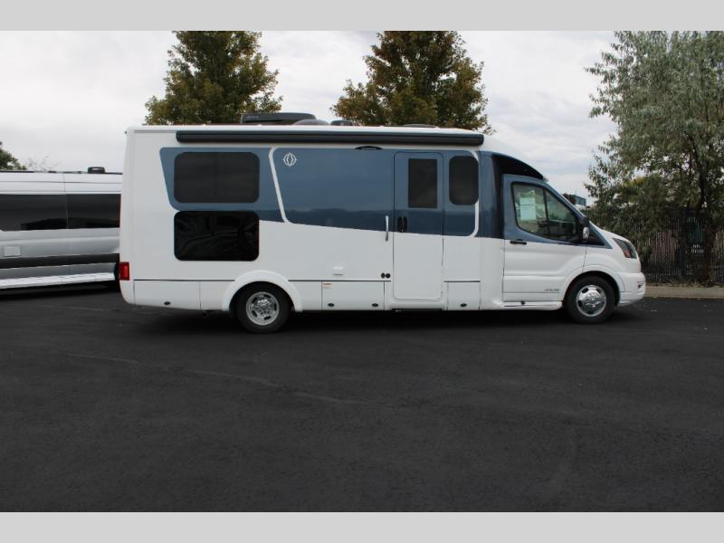 With any Leisure Travel Wonder Class B+ gas motorhome, the construction includes vacuum bonded aluminum framed insulated contoured sidewalls and a domed roof with fiberglass exterior, and a floor with composite exterior on a Ford Transit dual rear wheel chassis. Some highlights include the 16" heavy-duty forged aluminum alloy wheels, the auto high-beam headlamps, and the advance active safety features. The interior offers the SYNC 4 navigation system, curved soft close overhead cabinetry doors with hidden catches, full extension ball bearing soft close drawer tracks, LED aisle lighting and above cabinet hidden accent lights, and tile look vinyl flooring throughout for style and easy care. Optional AWD is available, along with the optional 60th Anniversary Edition decor and exterior color, solar panels for off-grid capability, a battery upgrade, and more!
