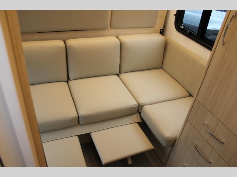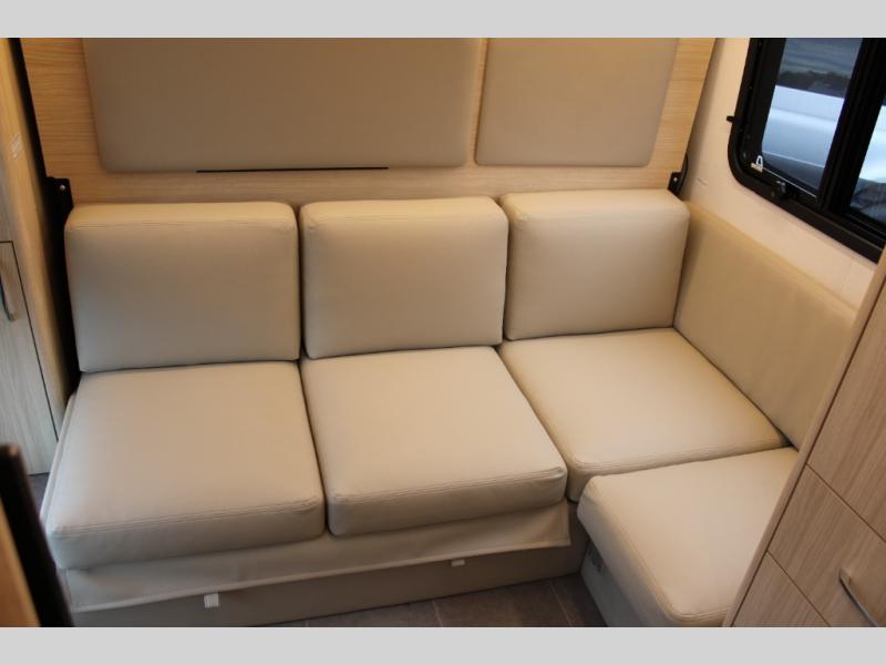 This coach combines comfort with versatility and convenience allowing you to travel wherever and whenever you want with your three favorite people! You will find seatbelts for four, a rear Murphy bed, and a removable front dinette area with an optional bed to sleep four. The rear offers a residential-style sectional lounge sofa with footrests and a swivel table to create a work station or another dining space. The galley offers a flip-down extension for more prep and serving space, a convection microwave oven, a flush mount LP cooktop with hinged glass cover, a garbage can, a pull-out pantry, and more to enjoy cooking while on the go.