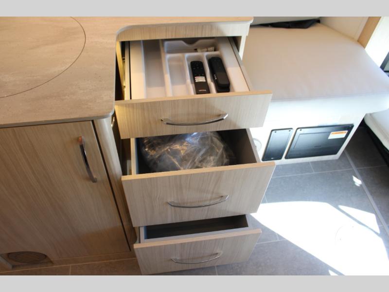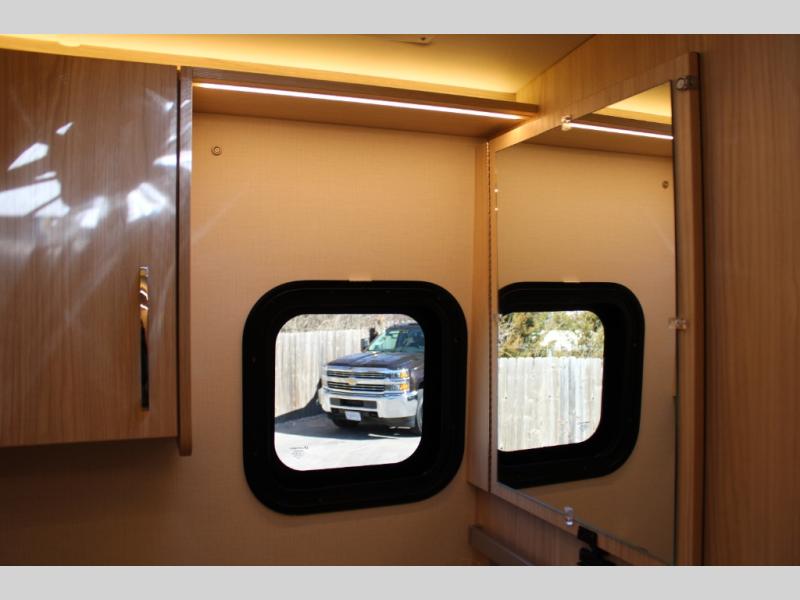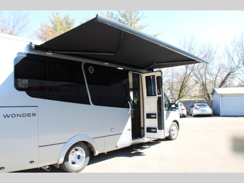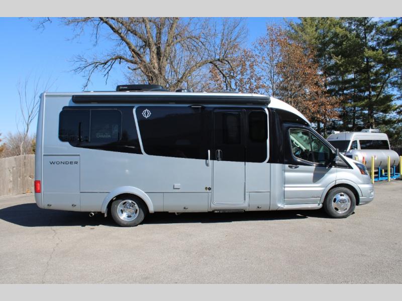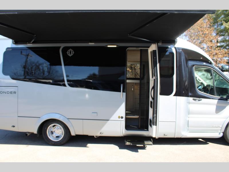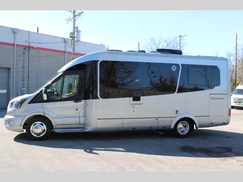 With any Leisure Travel Wonder Class B+ gas motorhome, the construction includes vacuum bonded aluminum framed insulated contoured sidewalls and a domed roof with fiberglass exterior, and a floor with composite exterior on a Ford Transit dual rear wheel chassis. Some highlights include the 16" heavy-duty forged aluminum alloy wheels, the auto high-beam headlamps, and the advance active safety features. The interior offers the SYNC 4 navigation system, curved soft close overhead cabinetry doors with hidden catches, full extension ball bearing soft close drawer tracks, LED aisle lighting and above cabinet hidden accent lights, and tile look vinyl flooring throughout for style and easy care. Optional AWD is available, along with the optional 60th Anniversary Edition decor and exterior color, solar panels for off-grid capability, a battery upgrade, and more!