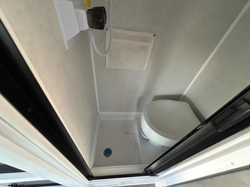 You'll love time at the campground in this lightweight travel trailer! Everything you need for an enjoyable experience has been provided, such as a functional kitchen with a two-burner stove and 12V refrigerator to cook and store food, plus a convenient wet bath so you can freshen up each day! A 68" jack knife sofa with a 68" x 31" bed/bunk above will provide sleeping space for guests, while you take the 45" x 74" bed. There are overhead cabinets for your things, along with two pantries for dry goods, snacks and more!