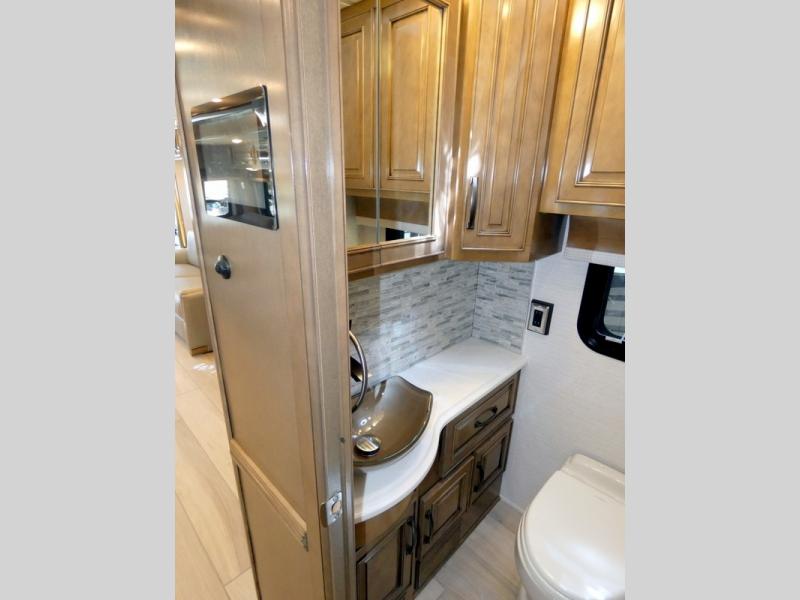 Luxury is waiting for you in this spacious Dutch Star Class A diesel motorhome that can comfortably sleep six each night. The full-wall slide plus two additional slides will open up the whole unit for a more at-home feel. Relax on the hide-a-bed sofa or read a book on the jackknife sofa. The hide-a-leaf dinette will be the perfect place to catch up on some work while you're away from home. Easily prepare breakfast, lunch, and dinner on the all-electric induction cooktop, or use the convenient stainless steel convection microwave with an air fryer feature. This model features a master suite with a pillowtop king bed, dual wardrobes and a dresser, plus an LED TV. You will love the rear bath cathedral ceiling that will add additional height, plus there is plenty of storage space and two bath sinks so that you and your spouse can freshen up at once! Specifications shown are with the standard Freightliner tag axle chassis. See dealer for details if optional Spartan K2 tag axle chassis is selected.