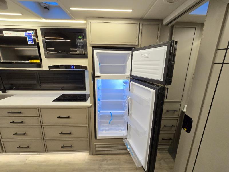 The Freedom Aire Class C diesel motorhome by Newmar gives you just that; freedom! This compact coach is easily maneuverable without sacrificing comfort. There are gelcoated fiberglass exterior sidewalls, front and rear caps, Polar Pak R19 batten insulation in the roof, plus aluminum frame sidewalls and roof construction for added durability. You'll love the super polished solid surface countertops, Sable Maple hardwood cabinets, premium linoleum flooring, plus leather sofas and front seats. You can keep your adventures going with the RVMP 4.0 kW generator, two 6V AGM house batteries, two flexible 120W solar panels, and more electrical features. And all of your entertainment needs will be met with an exterior entertainment center, a Samsung LED TV in the living room, a Bose soundbar sound system, and a Wi-Fi Ranger Denali/Spruce LTE for your mobile internet connectivity.