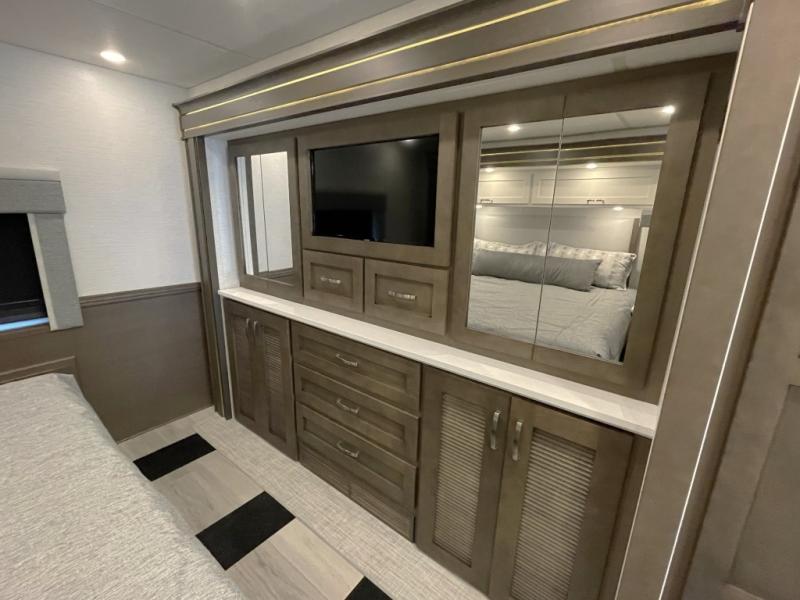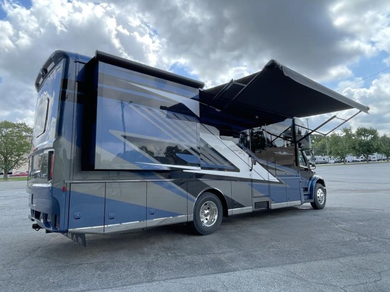 Built on a Freightliner S2RV Chassis with 360 horsepower and a 12,000 lb towing capacity, this coach combines power, maneuverability, and comfort. An 8kW generator and lithium batteries keep you powered on the go.