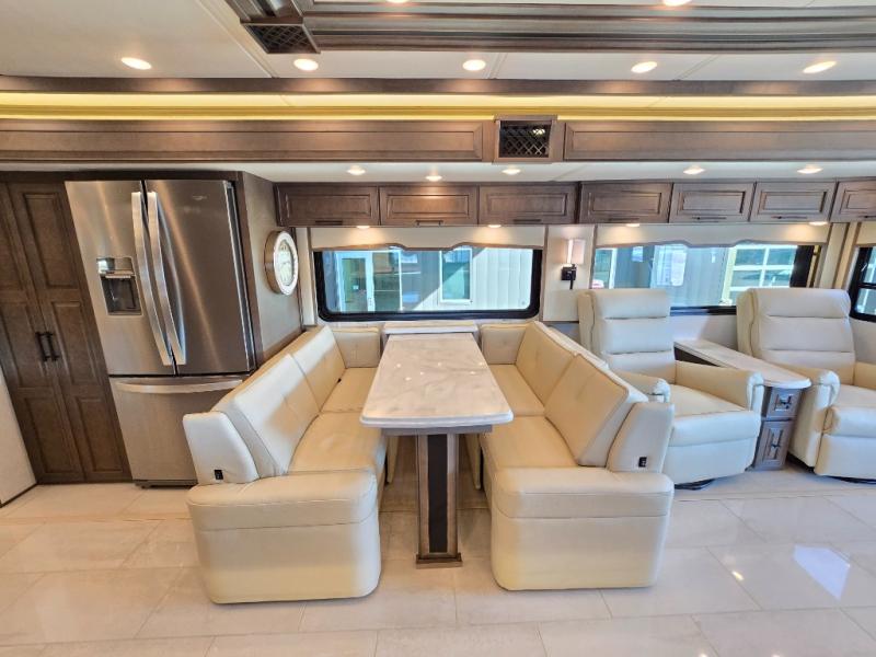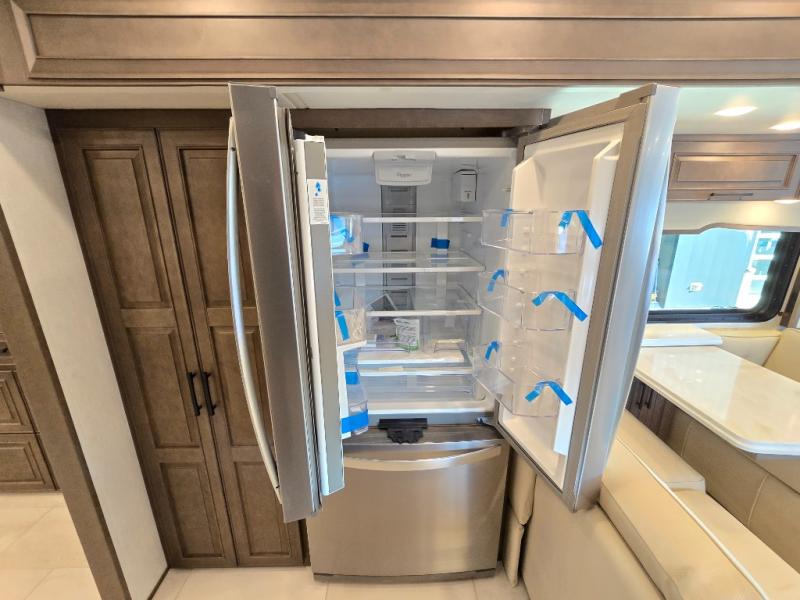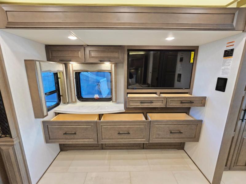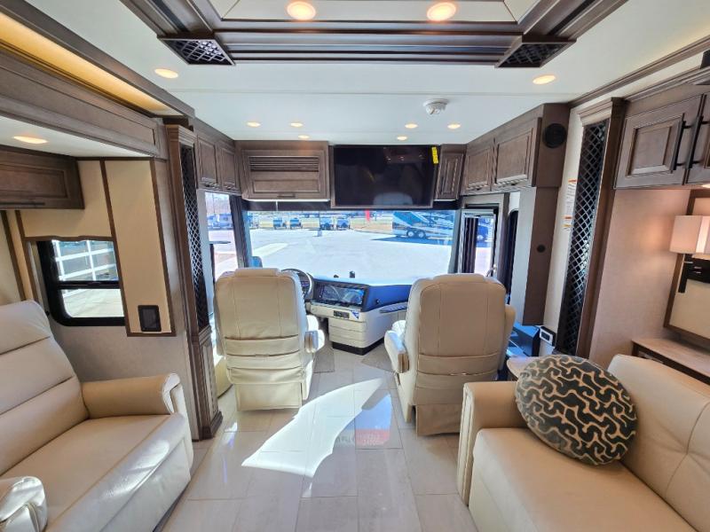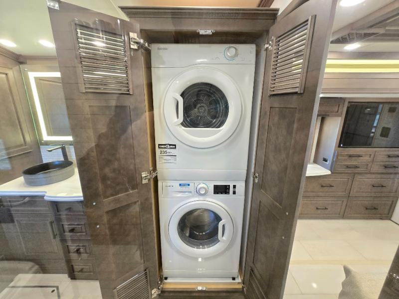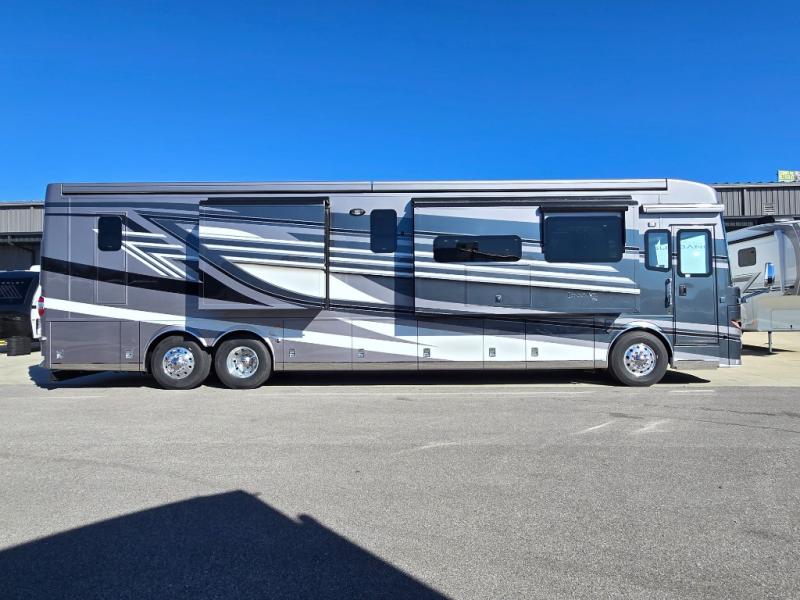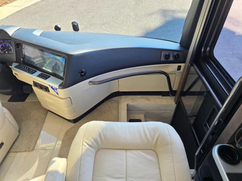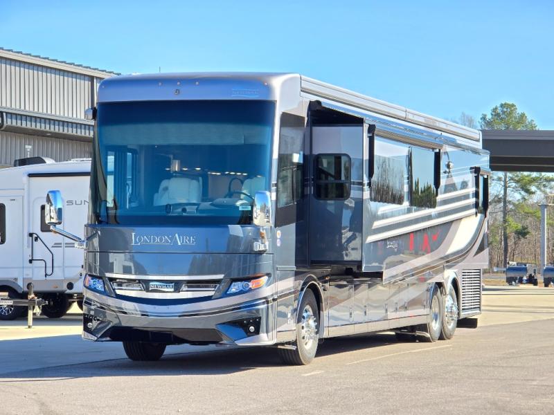 The London Aire Class A diesel motorhome by Newmar starts with a Freightliner chassis with a tag axle and 605 HP, tire pressure monitoring on the tag axle chassis, aluminum wheels, and an electronic chassis information center in dash. There is also 5/8" foam insulation laminated in sidewalls and ceiling to ensure years of use. You will stay comfortable with the three 15M Penguin heat pump central air conditioners with remote control thermostat that will keep you warm during those cooler months. Each model includes super polished solid surface countertops, hardwood cabinets with raised panel doors, and many more luxuries. Some of the conveniences you are sure to appreciate are the central vacuum with a tool kit, the Aqua Miser shower system, and the air leveling control system for hassle-free setup.