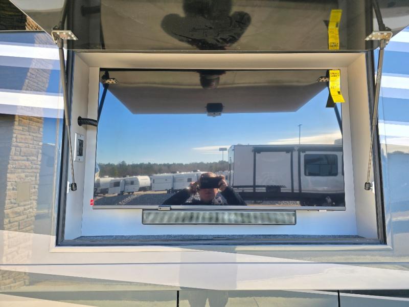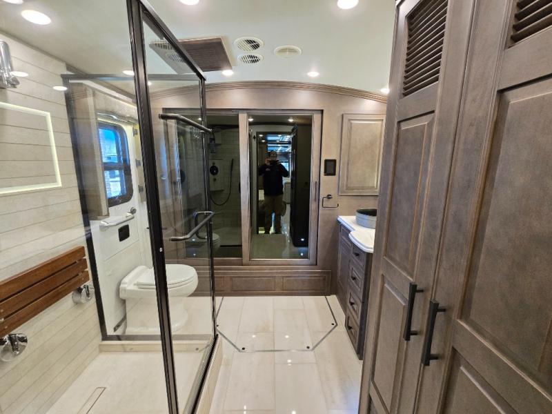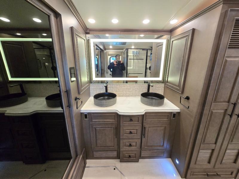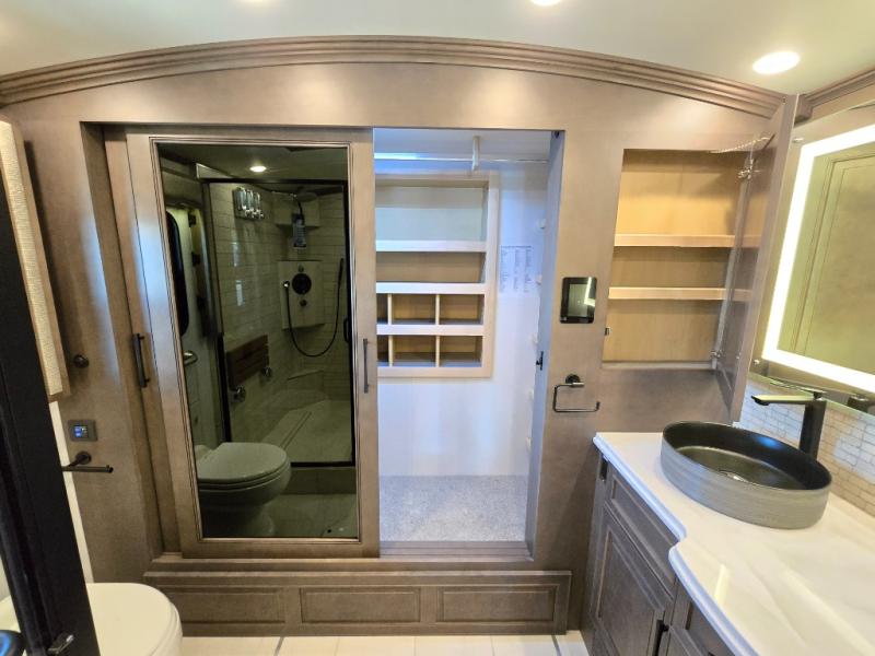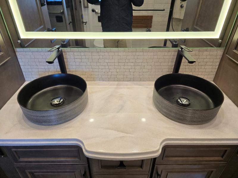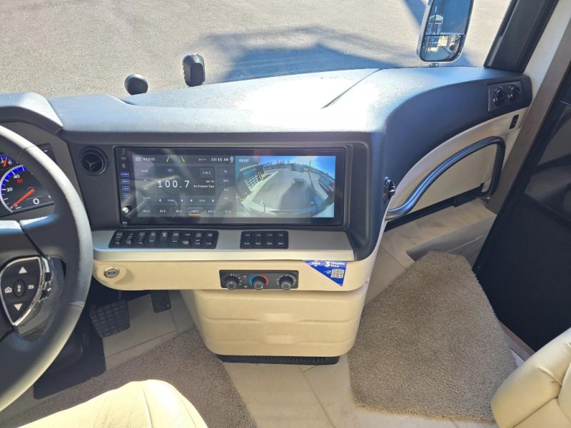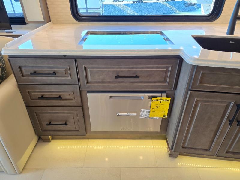 Head out on an adventure to see the Grand Canyon, the Pacific ocean, or the Rocky Mountains in this luxurious motorhome. You will appreciate a spacious full rear bath with a shower with a seat, a wardrobe with sliding doors, plus two bath sinks for convenience! The half bath will be perfect if you are traveling with friends, and there is a master bedroom with plenty of storage space for your belongings. The chef of your group will be able to prepare meals each day on the three burner cooktop or in the stainless steel 30" convection microwave, and there is a hide-a-leaf dinette where you can enjoy your meal together and play a game of cards after it's all clean up!