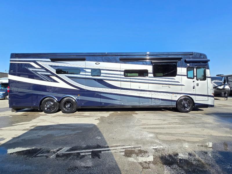 The London Aire Class A diesel motorhome by Newmar starts with a Freightliner chassis with a tag axle and 605 HP, tire pressure monitoring on the tag axle chassis, aluminum wheels, and an electronic chassis information center in dash. There is also 5/8" foam insulation laminated in sidewalls and ceiling to ensure years of use. You will stay comfortable with the three 15M Penguin heat pump central air conditioners with remote control thermostat that will keep you warm during those cooler months. Each model includes super polished solid surface countertops, hardwood cabinets with raised panel doors, and many more luxuries. Some of the conveniences you are sure to appreciate are the central vacuum with a tool kit, the Aqua Miser shower system, and the air leveling control system for hassle-free setup.