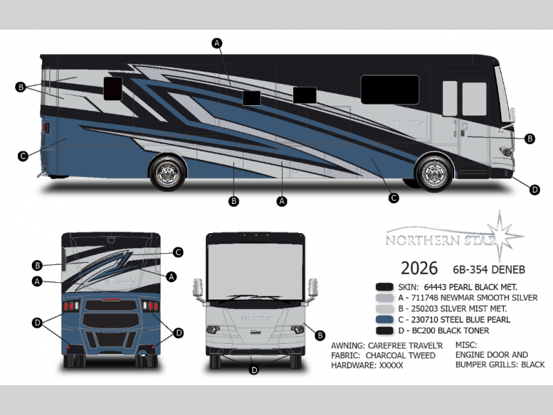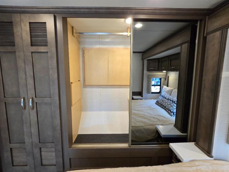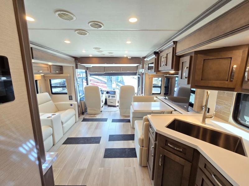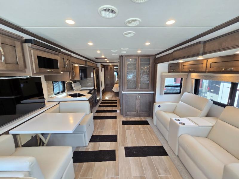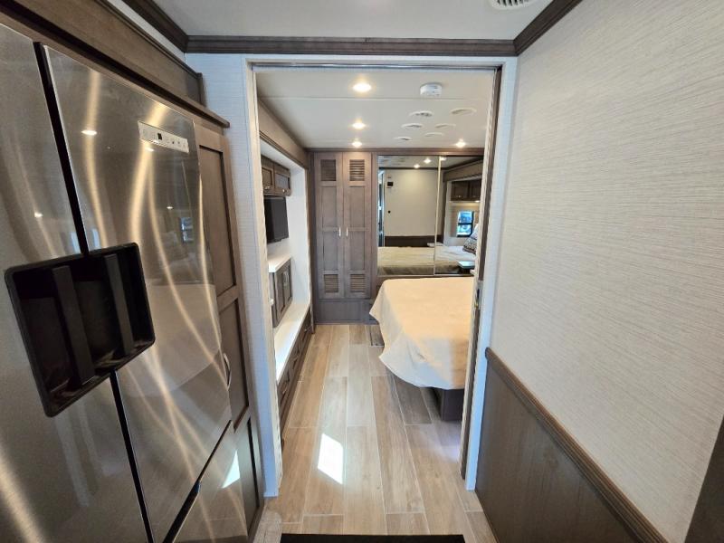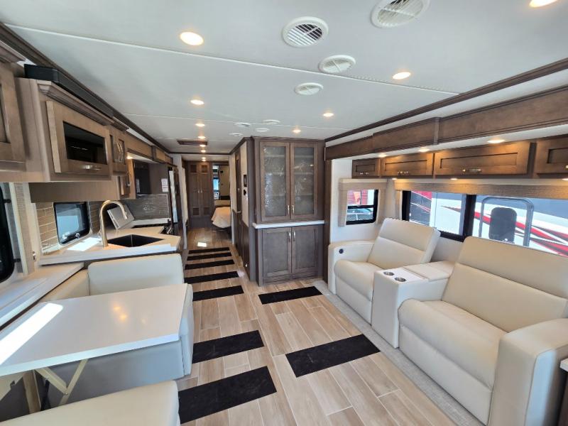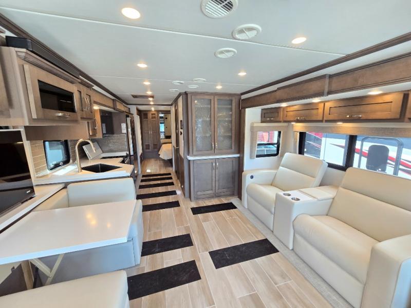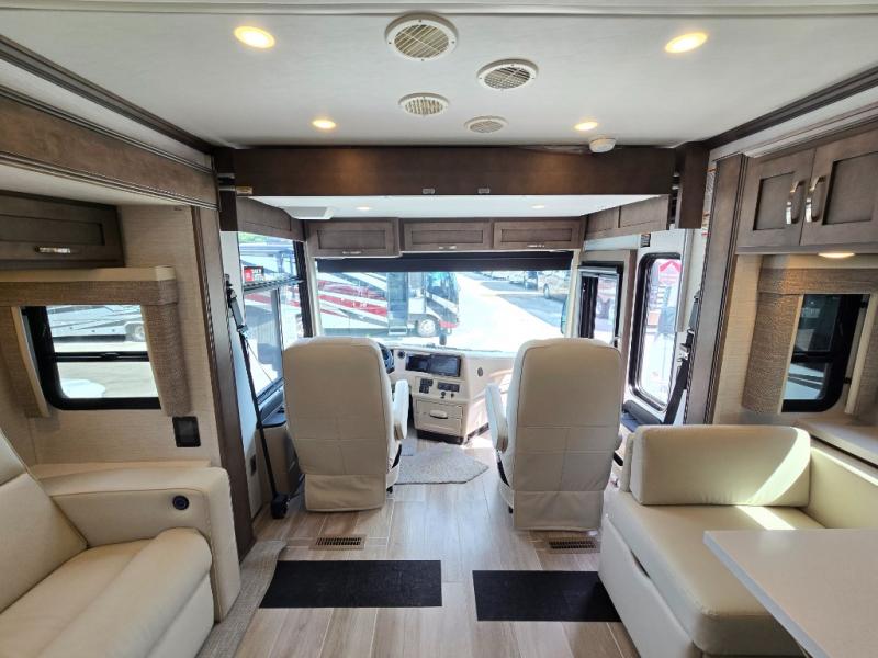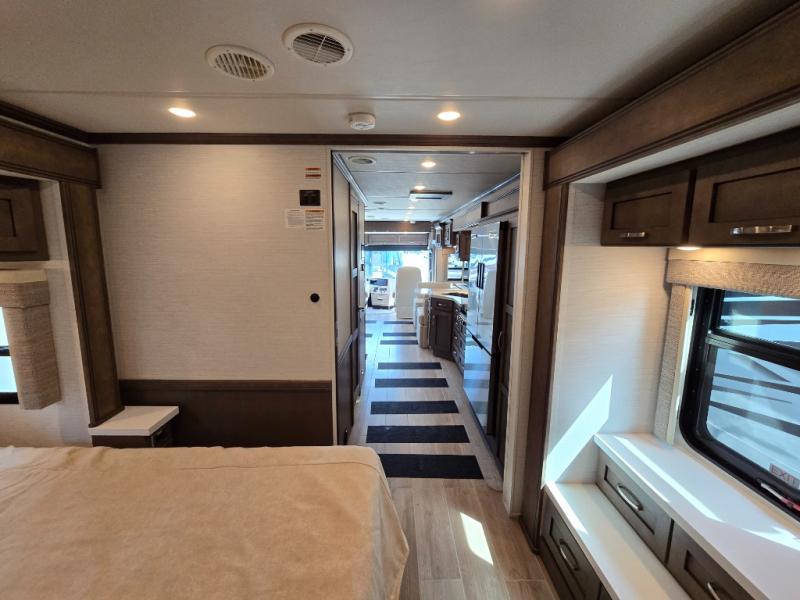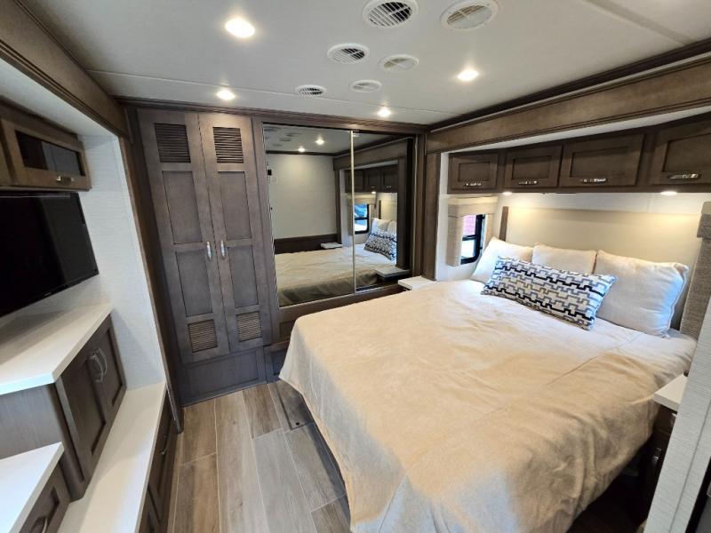 Step right up to the diesel pusher lifestyle with Newmar's most affordable Class A diesel coach, the Northern Star! You will be met with a luxurious interior that includes maple cabinet doors, polished solid-surface countertops, Villa Comfort Fit furniture, and MCD window shades to name a few comforts. The Full-Paint Masterpiece Finish is ultra sleek, and the diamond shield protection on the front cap will help against debris, bugs, and more. The driver is sure to appreciate the V-Ride drive axle suspension, along with the anti-lock braking system and Mobileye lane tracking and lane departure warning system for added safety. Each model also includes a Samsung LED TV in the living room and bedroom, a 10" Sony dash radio, a Bose soundbar sound system, and more entertainment features to ensure you'll never go bored on rainy days!
